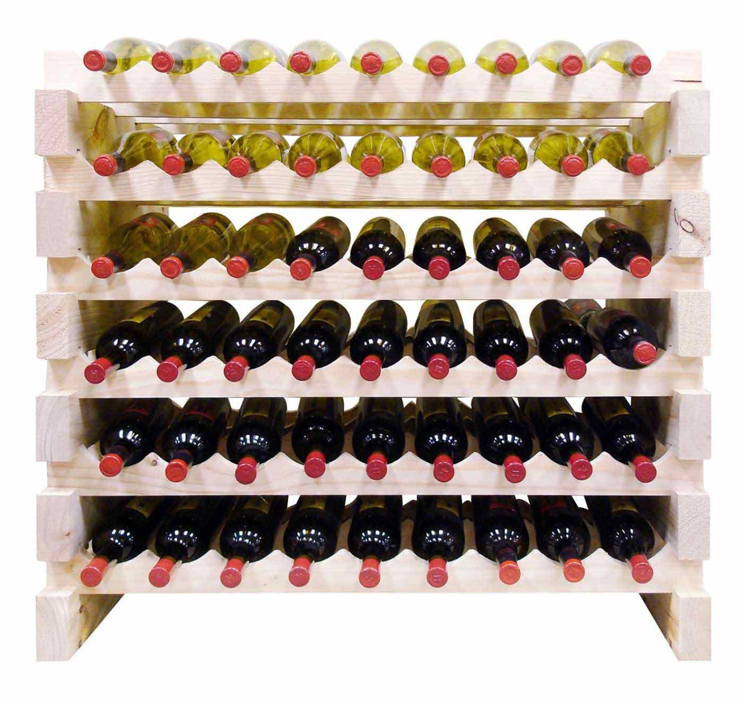 Create the wine cellar of your dreams with modular wine racking! These sturdy racks are made from Pine. Available in a variety of configurations they are versatile to meet your exact needs. The top shelves of these racks are capable of holding magnums while the lower racks hold standard 750ml Bordeaux style bottles. These units can be stacked up to 12 feet high or arranged side by side. As your wine collection grows, so can your wine racks!