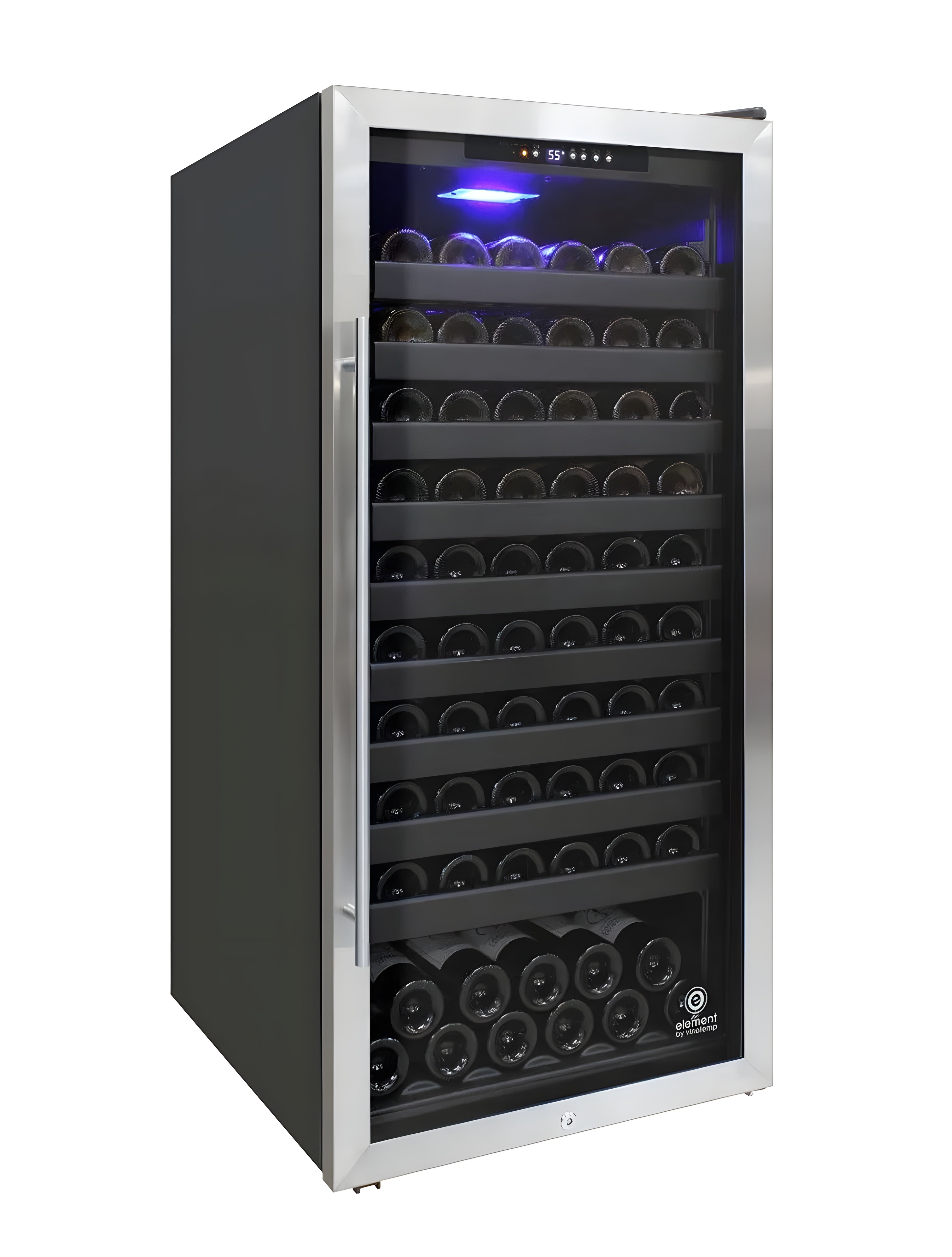 A: The Vinotemp EL-100SBB is a freestanding wine cooler with a 114-bottle capacity, designed for optimal long-term wine storage with a single-zone cooling system.