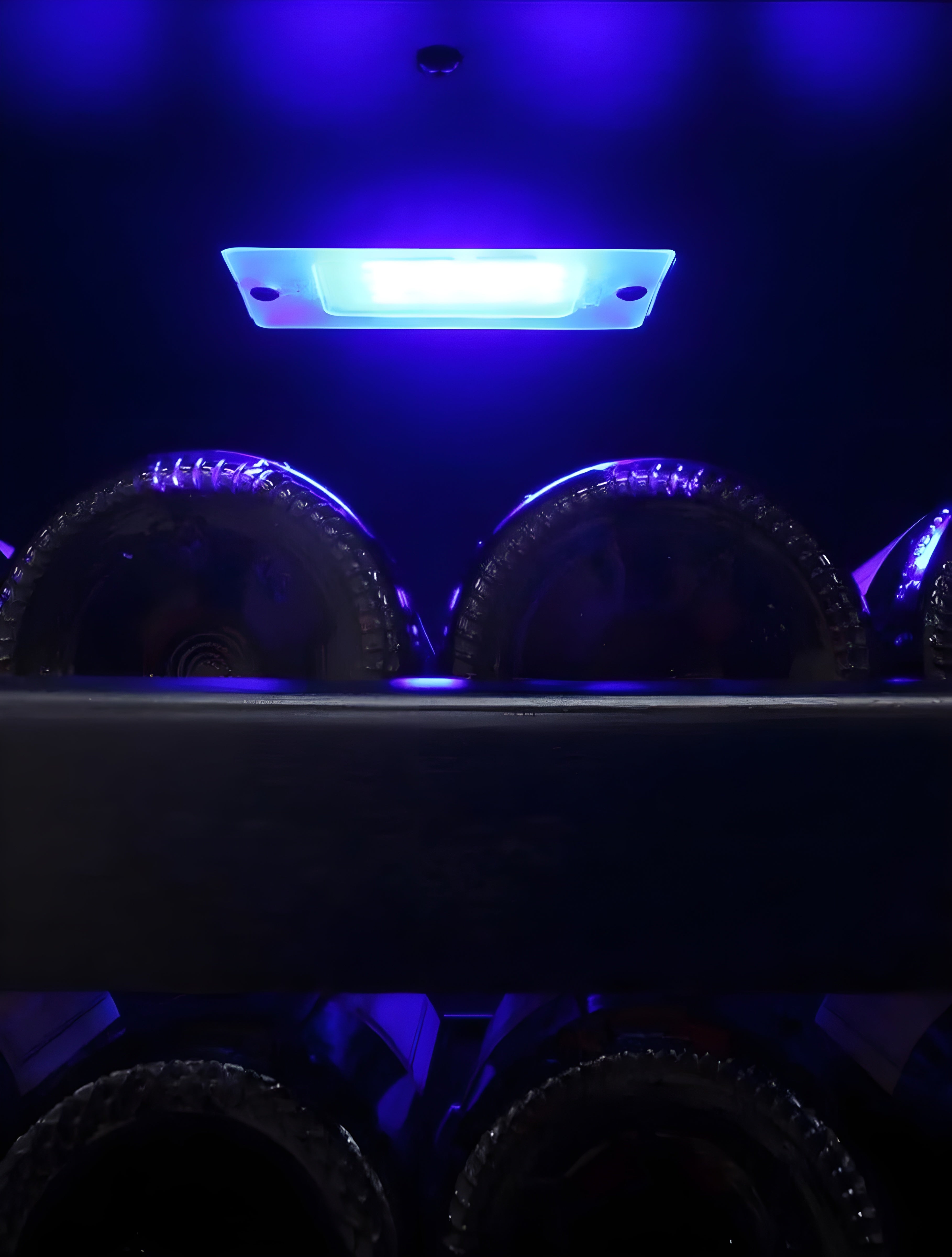 A: It features insulated double-pane glass doors to protect against UV light, a compressor cooling system for stability, and adjustable wooden shelves for proper bottle positioning.