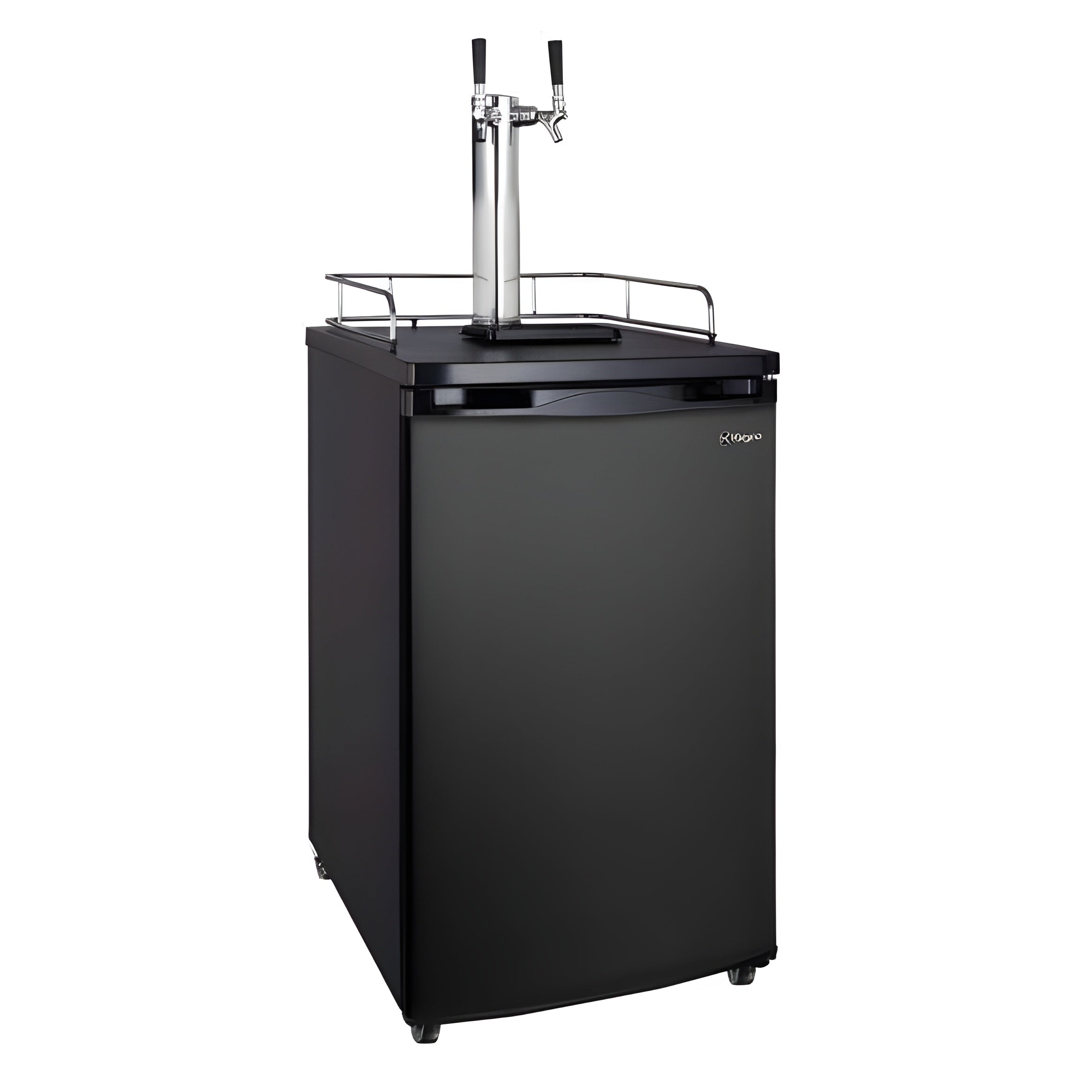 This Kombucha Cooler has a spacious interior that is large enough to hold up to two corny kegs at a time. Additional features include rolling casters that allow you to easily move the unit, a chrome guard rail that prevents glasses from sliding off the countertop, and a built-in drip tray for fast cleanup. A CO2 tank can easily fit inside the fridge, but it includes an external tank mount and a knockout for the air line if you'd like to manage the tank outside the fridge and have more room inside. What's more, this kombucha keg dispenser converts to a refrigerator with two adjustable wire shelves so you can use it for extra storage when it's not storing kegs.
