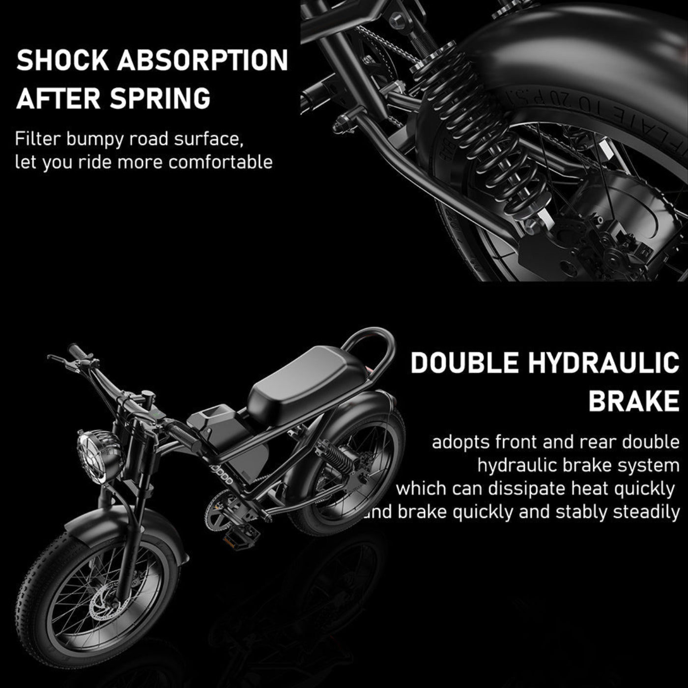 Enhanced Comfort: Designed with a full suspension system, including front and rear shocks, the Z8 absorbs bumps effectively, ensuring a smooth and comfortable ride.