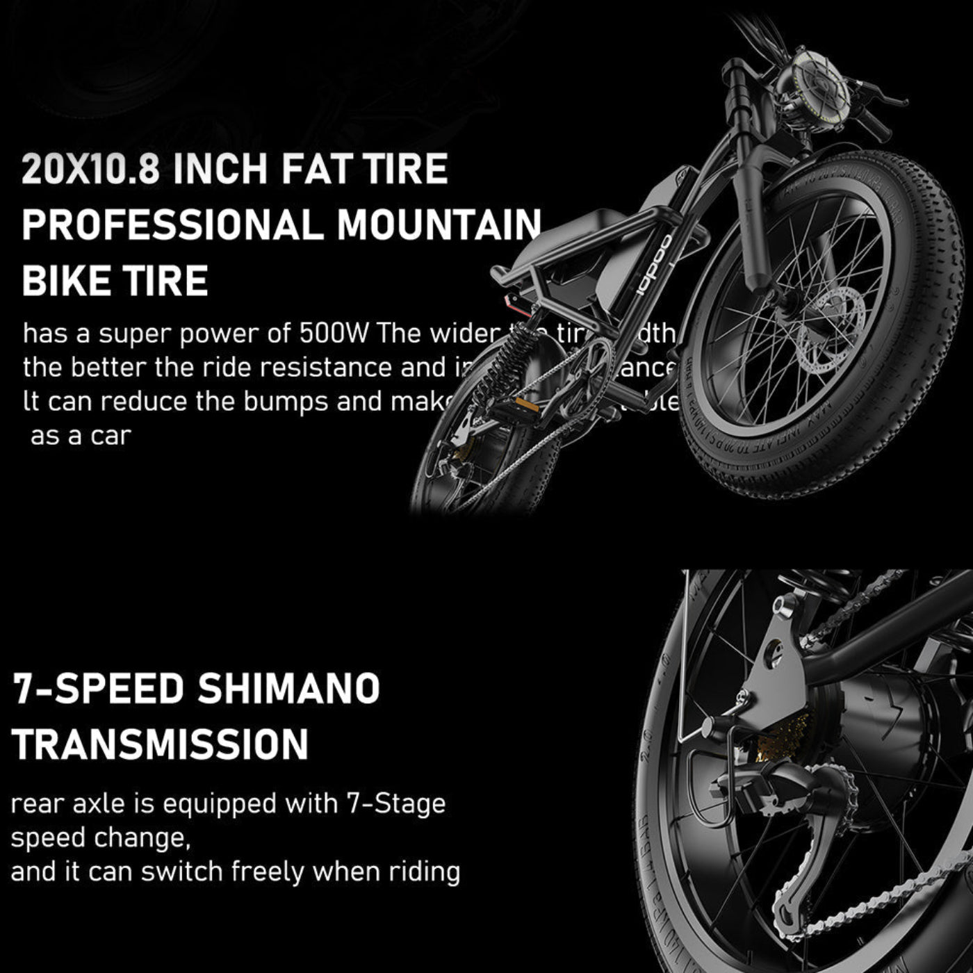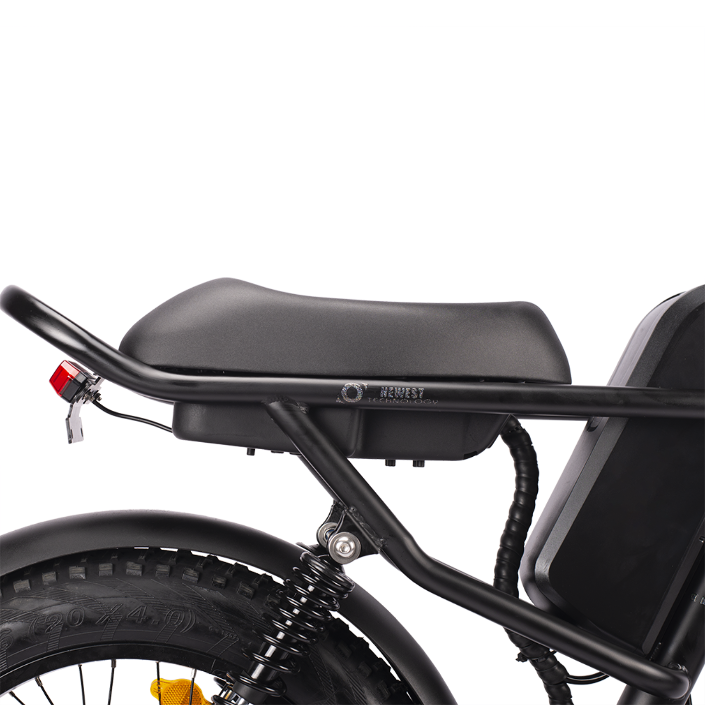 All-Terrain Tires: Featuring 20" x 4" fat tires, the bike provides excellent traction and stability across diverse terrains, including sand, snow, and gravel.