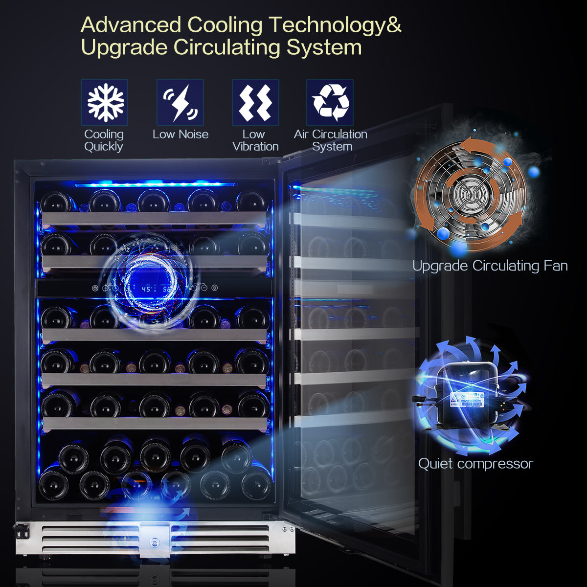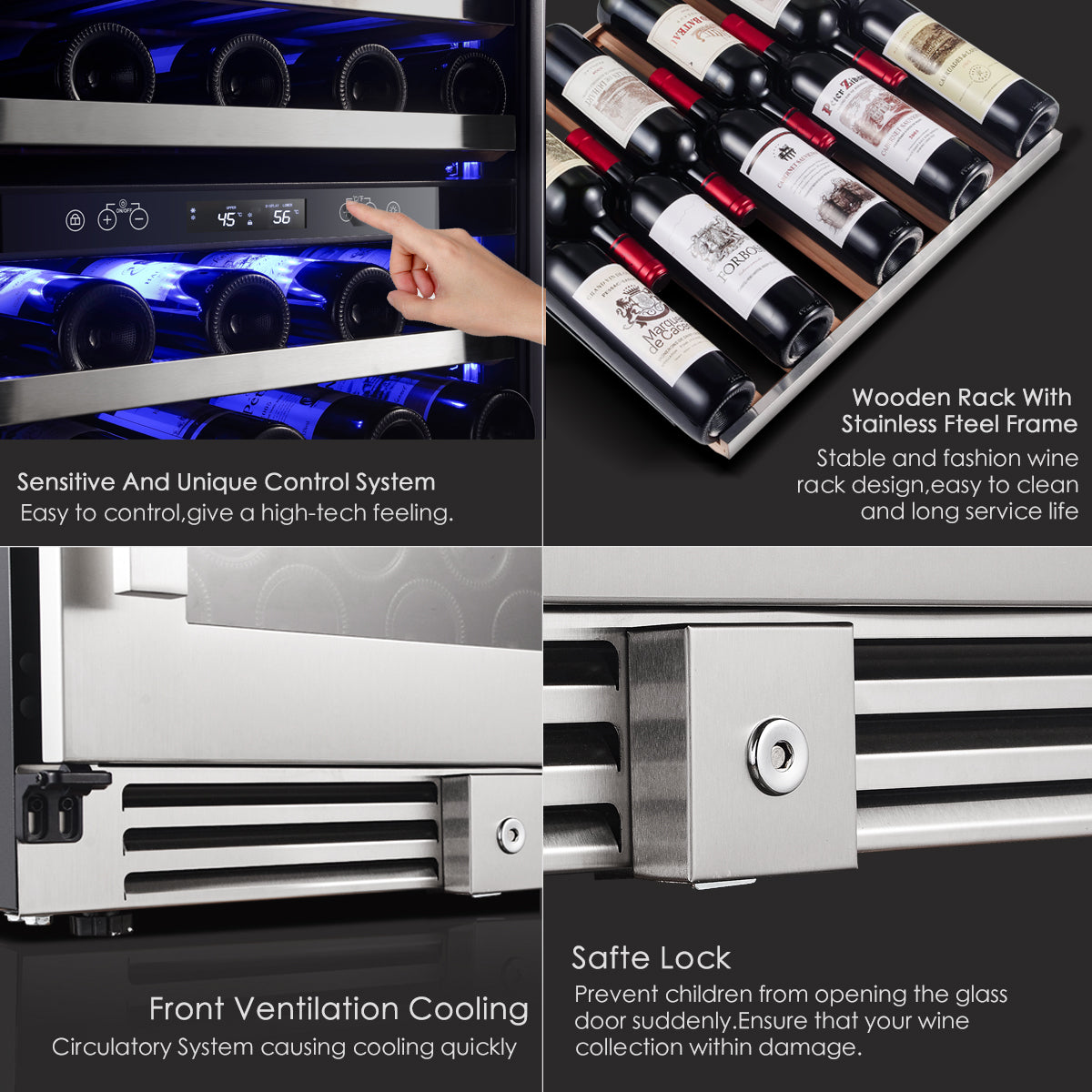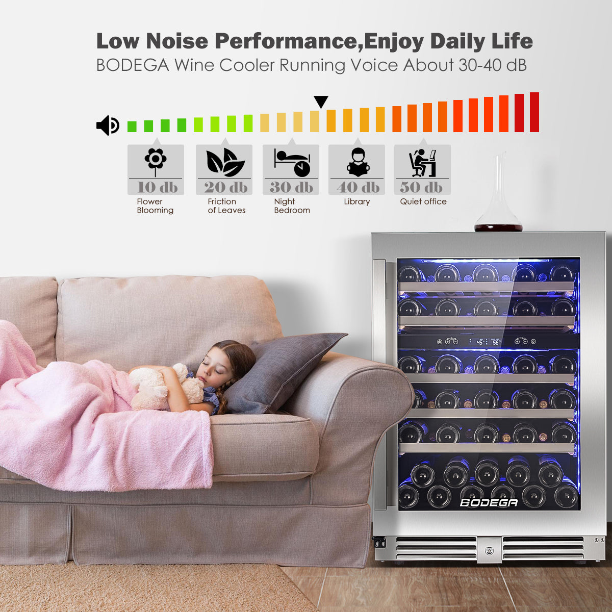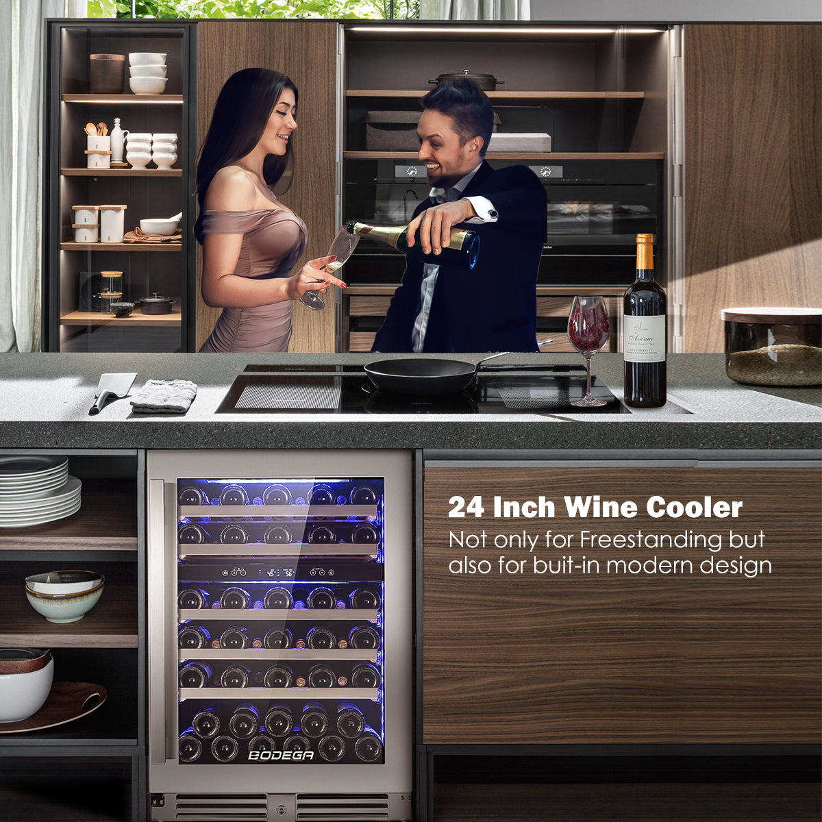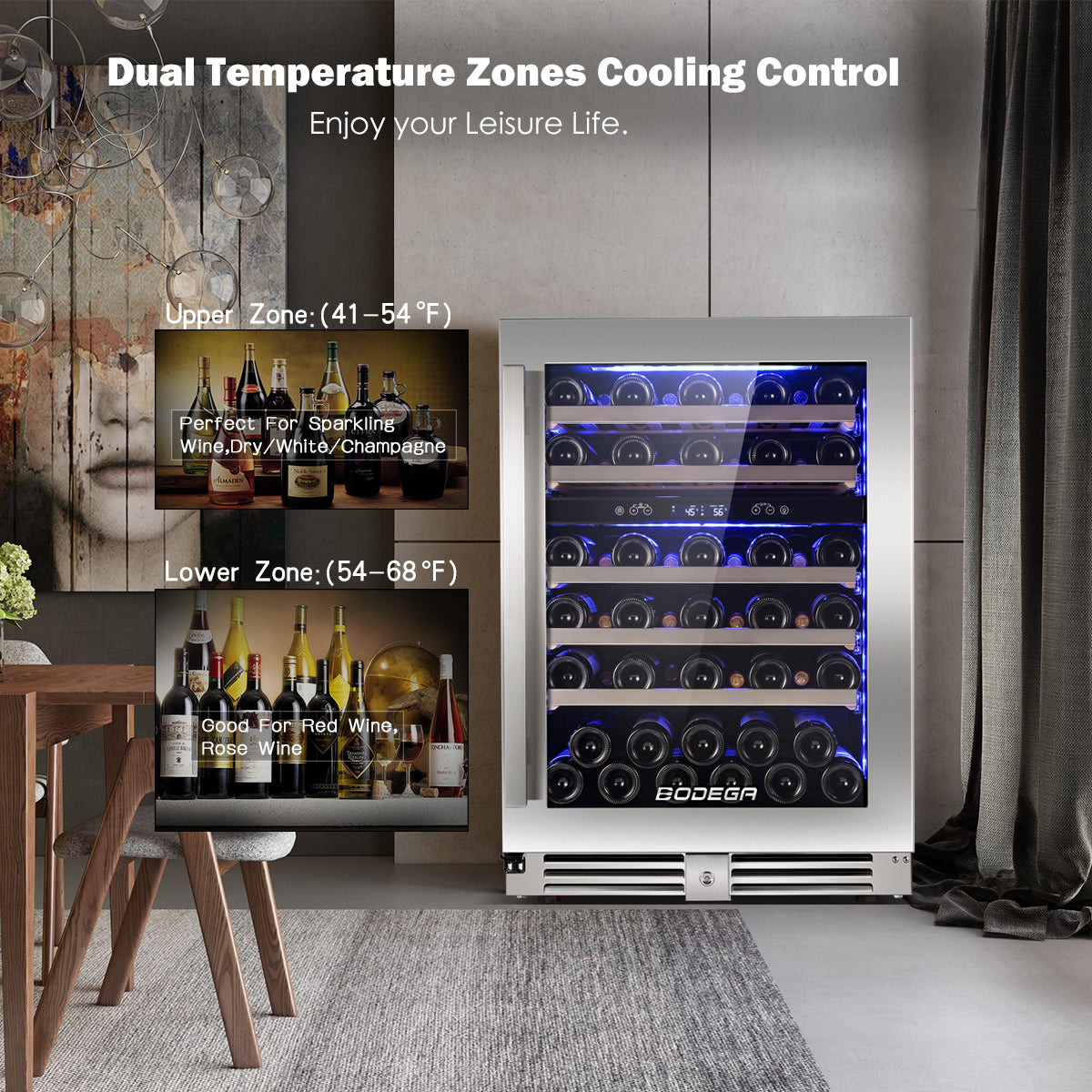 BODEGAcooler 24" 56 Bottles Dual Zone Compressor Wine Cooler with Wood Shelves