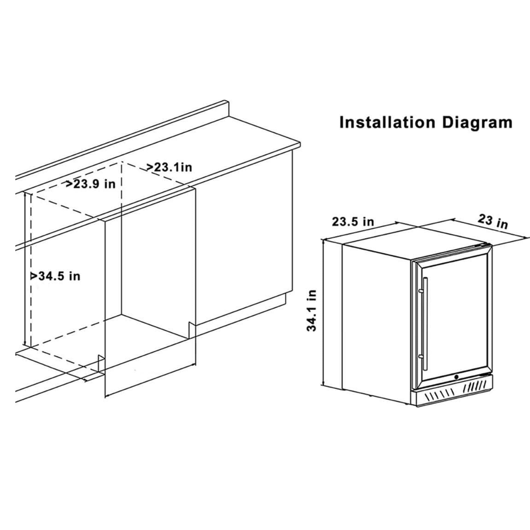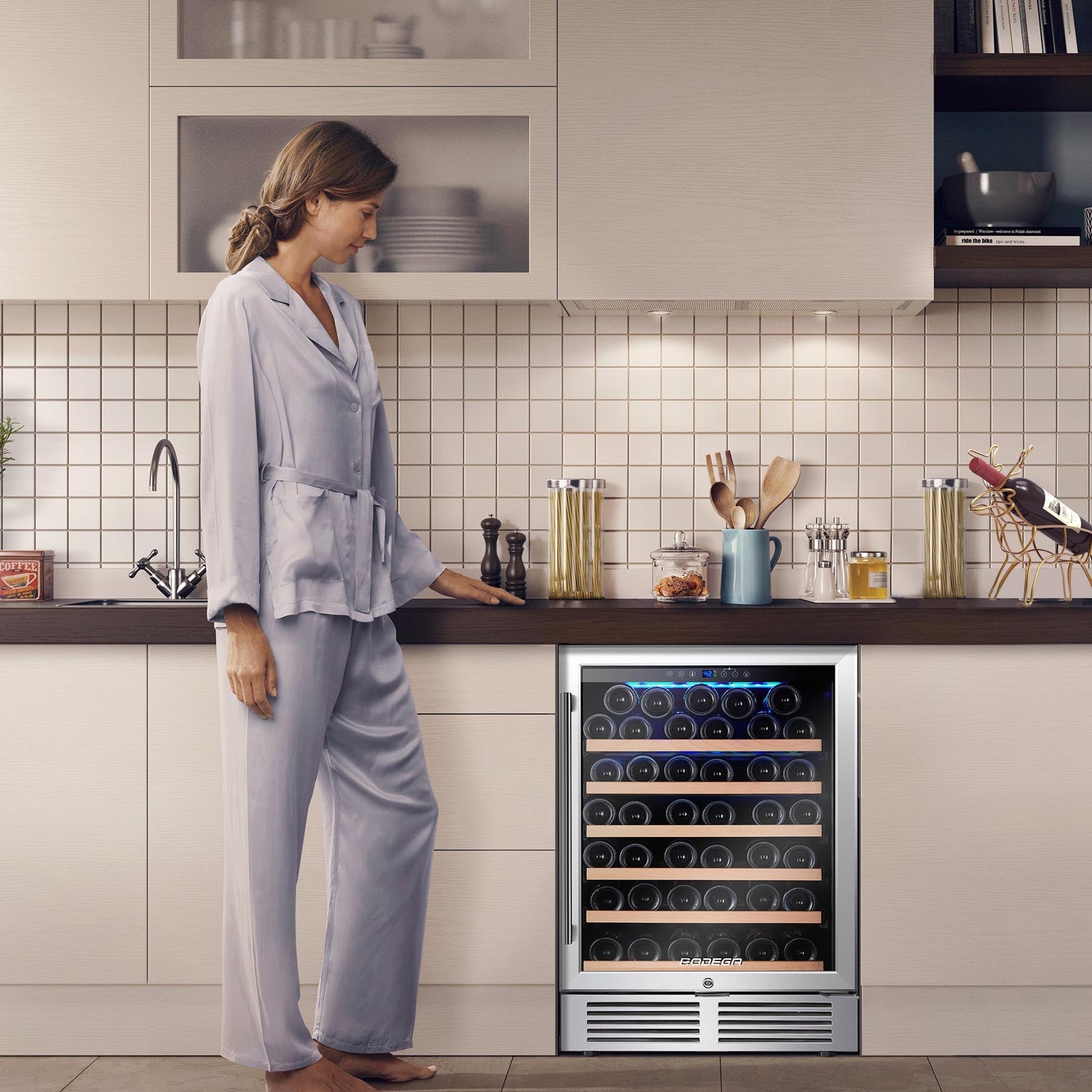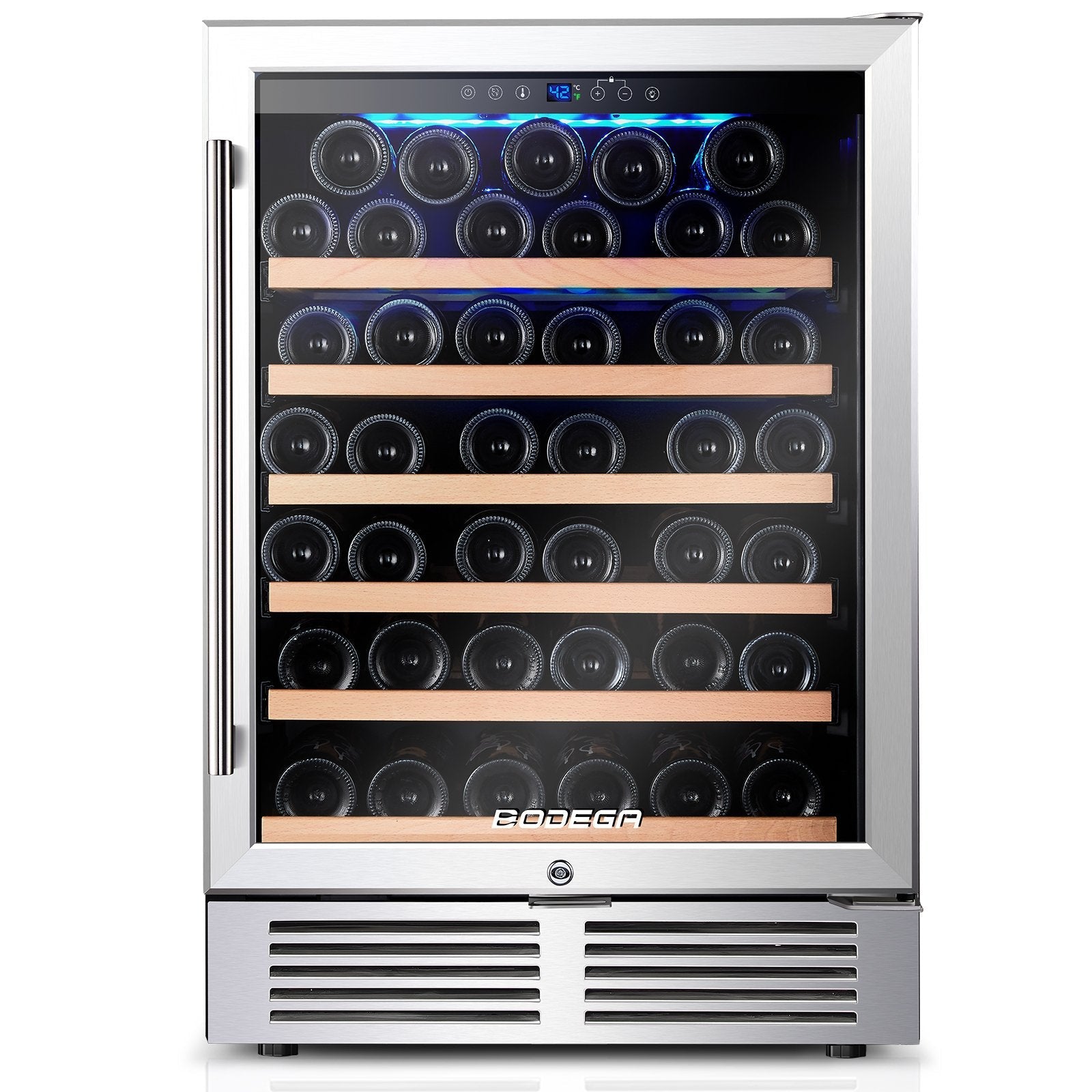 BODEGAcooler 24" 46 Bottles Wine Cooler in Stainless Steel with Wood Shelves