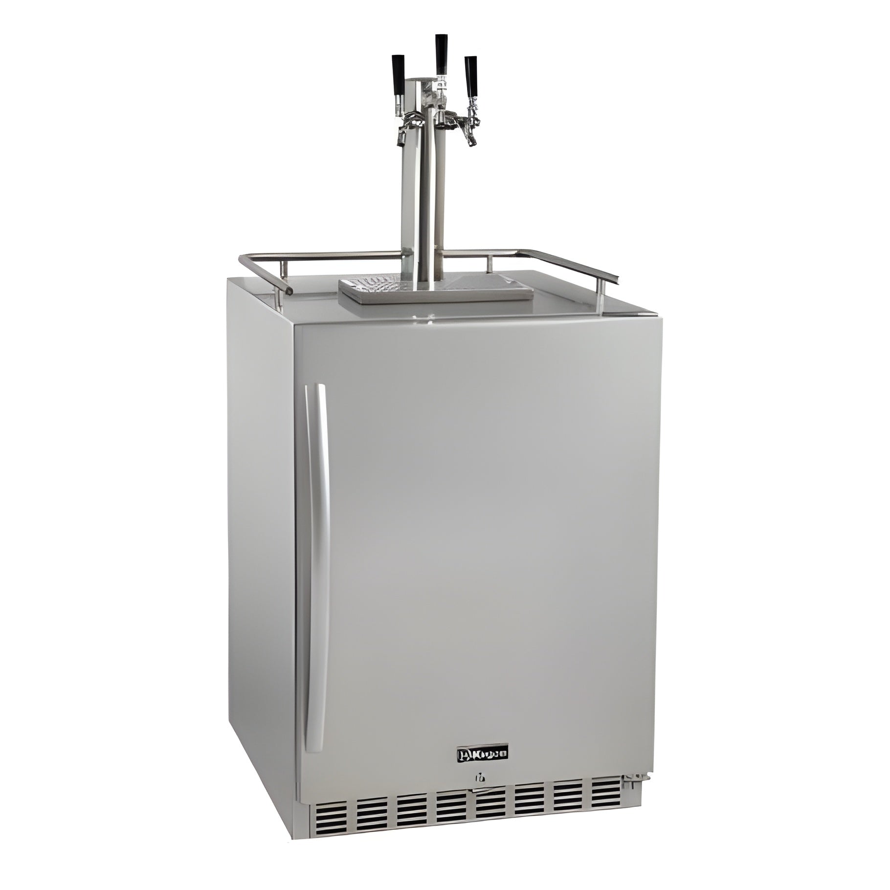 Outdoor left hinge kegerator can be built in undercounter to provide a seamless look to your backyard BBQ island or outdoor kitchen