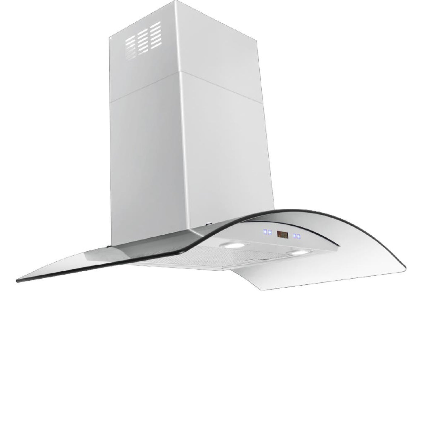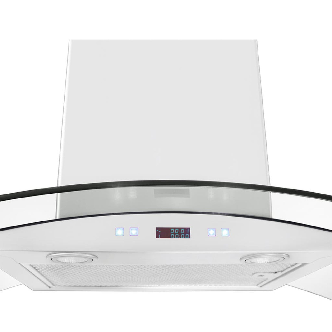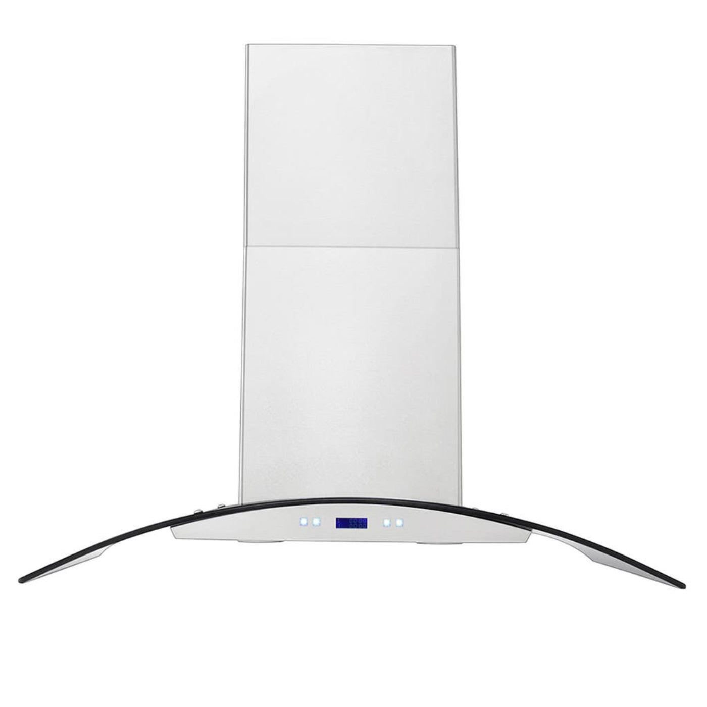 A: It is a wall-mounted range hood with a 600 CFM motor, designed for ducted installation, featuring a sleek stainless steel finish that enhances the kitchen's modern look.