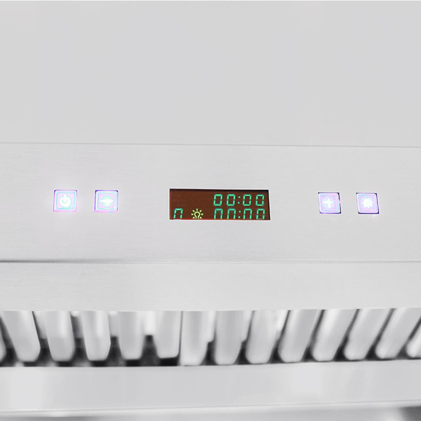 The PLFW 832 will clean your kitchen air with incredible efficiency. This wall range hood is rated at 1000 CFM – one of our most powerful 30” range hoods. At 1000 CFM, the 832 accommodates any cooking style. This fan doubles as a wall range hood and under cabinet range hood. It’s easy to use thanks to the backlit push buttons on the front. There, you can adjust the blower power and turn on the bright LED lights to help you see in the kitchen. The panel also features a sleek digital display where you can see the time and blower speed.
