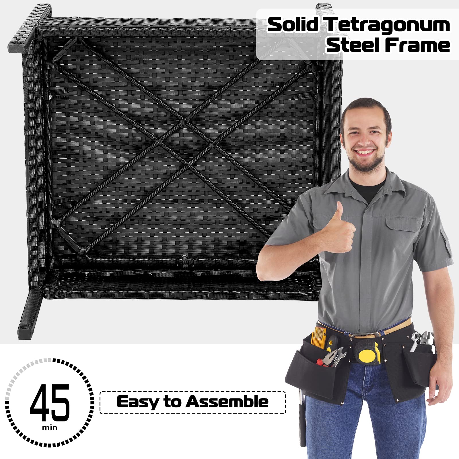 A: It features a durable PE rattan wicker frame with a sturdy steel structure for stability and longevity.