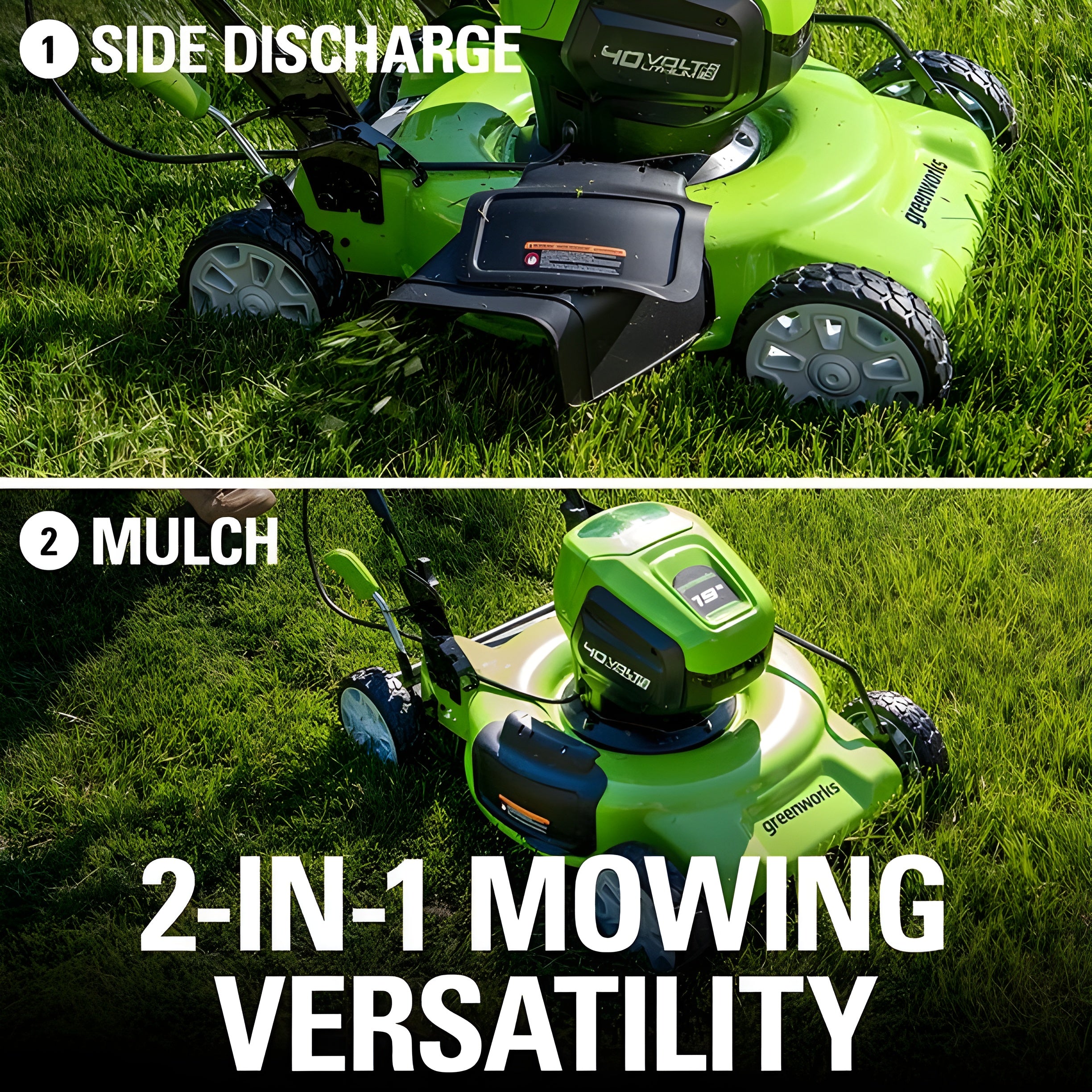 Q: What is the Greenworks 40V 19" Cordless Battery Push Mower - 2524902?