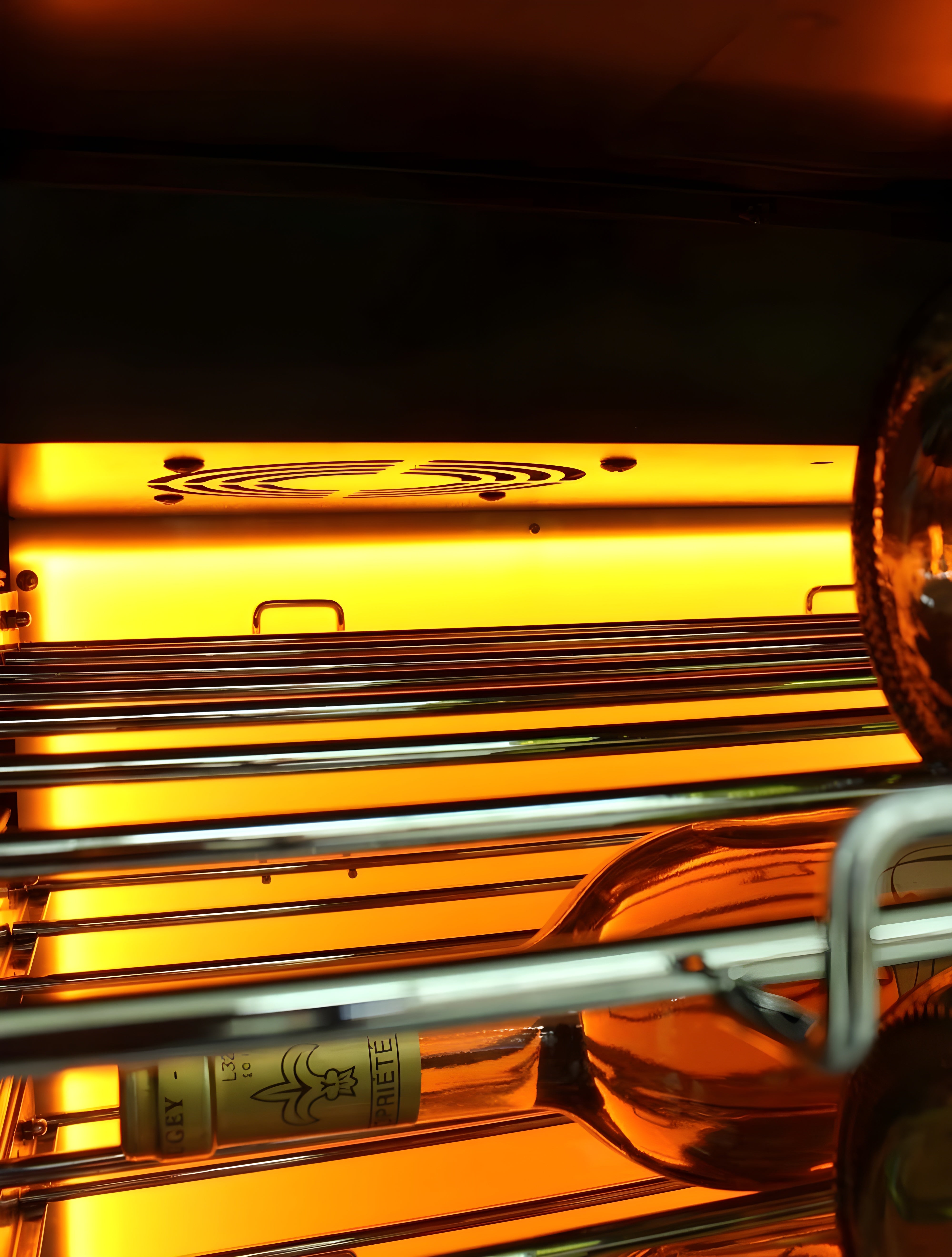 A: It includes soft interior LED lighting to elegantly showcase your wine collection.