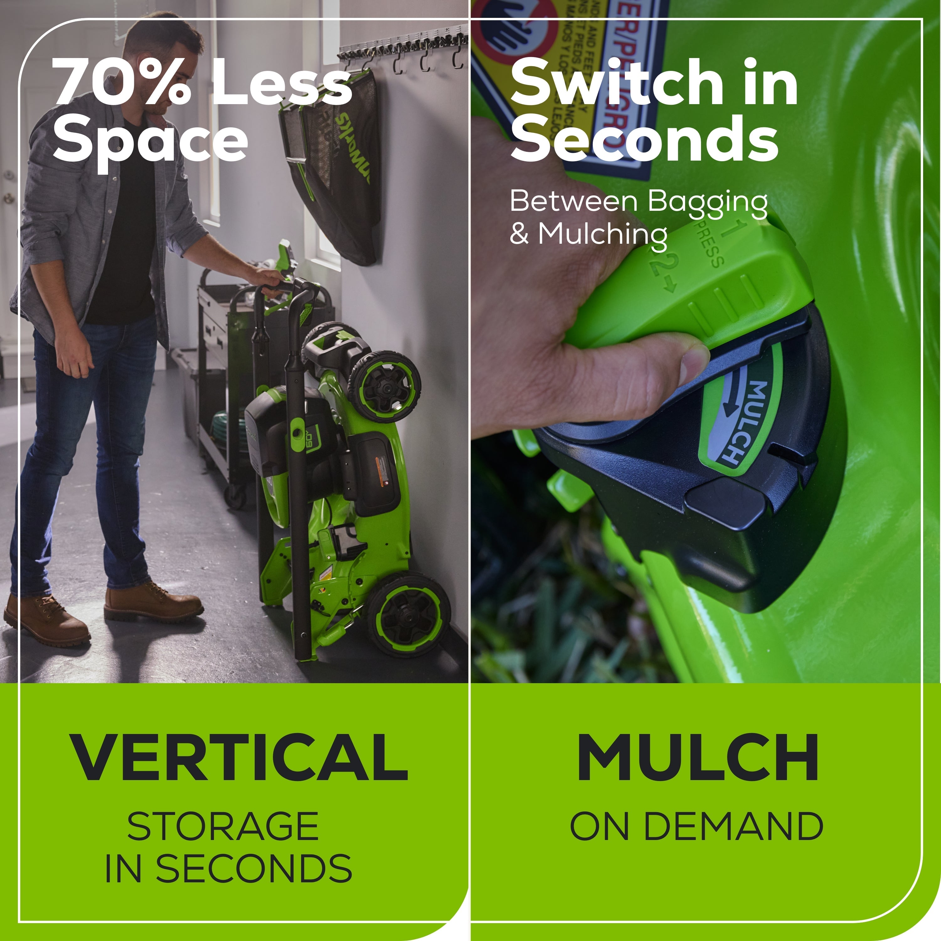 Powerfully smart. Tackle the toughest yards, one-handed, because our smart mowers never bog down. When grass gets thick, tall, or wet, Greenworks sensors tell our brushless motor to rush power to the mower blades. The end result - The perfect lawn, every time.