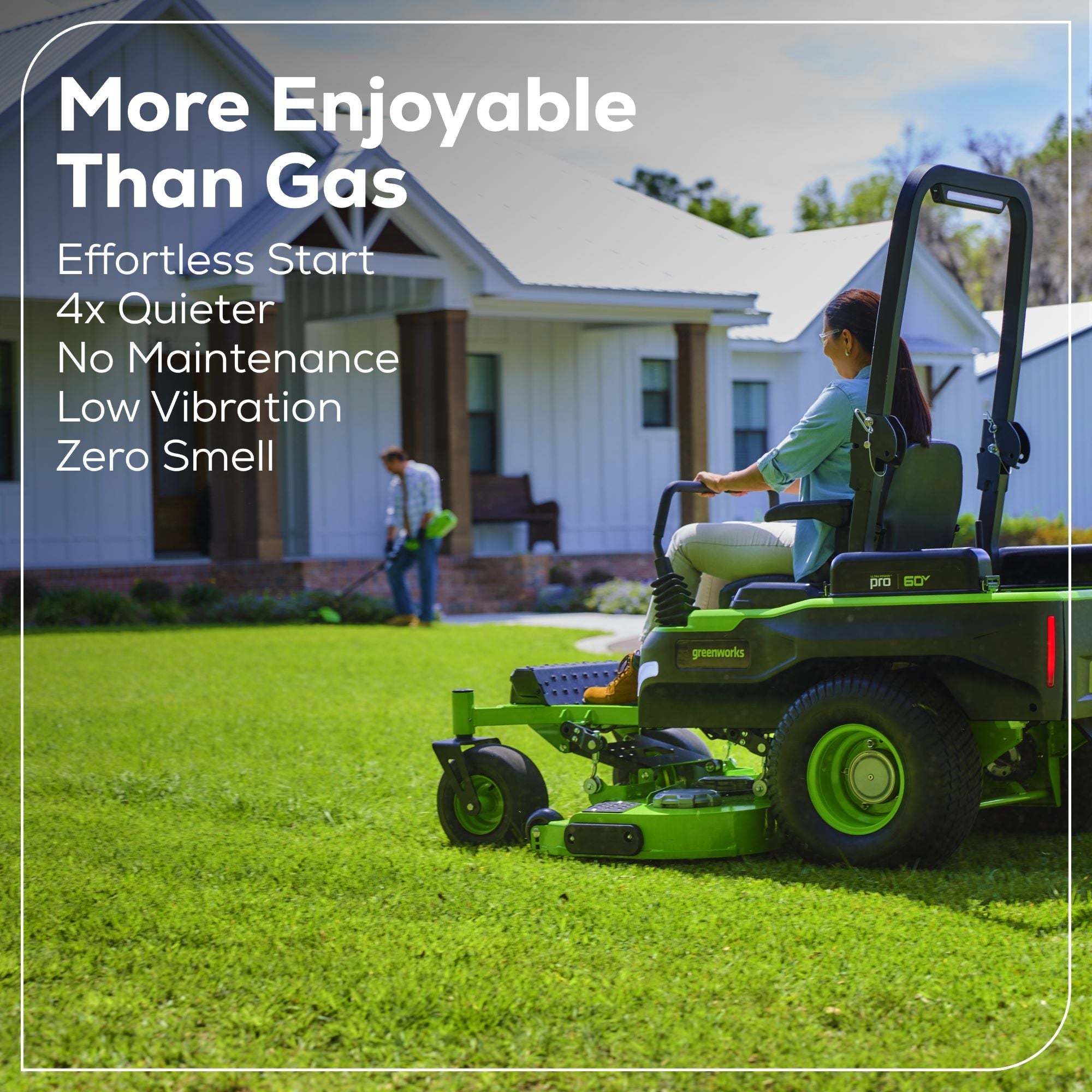 A: The Greenworks 60V MaximusZ offers the power of gas mowers without the emissions, noise, or maintenance. It provides a large cutting deck, extended battery life, and quick charging, making it an excellent choice for homeowners or professionals looking for an environmentally friendly, high-efficiency mower.