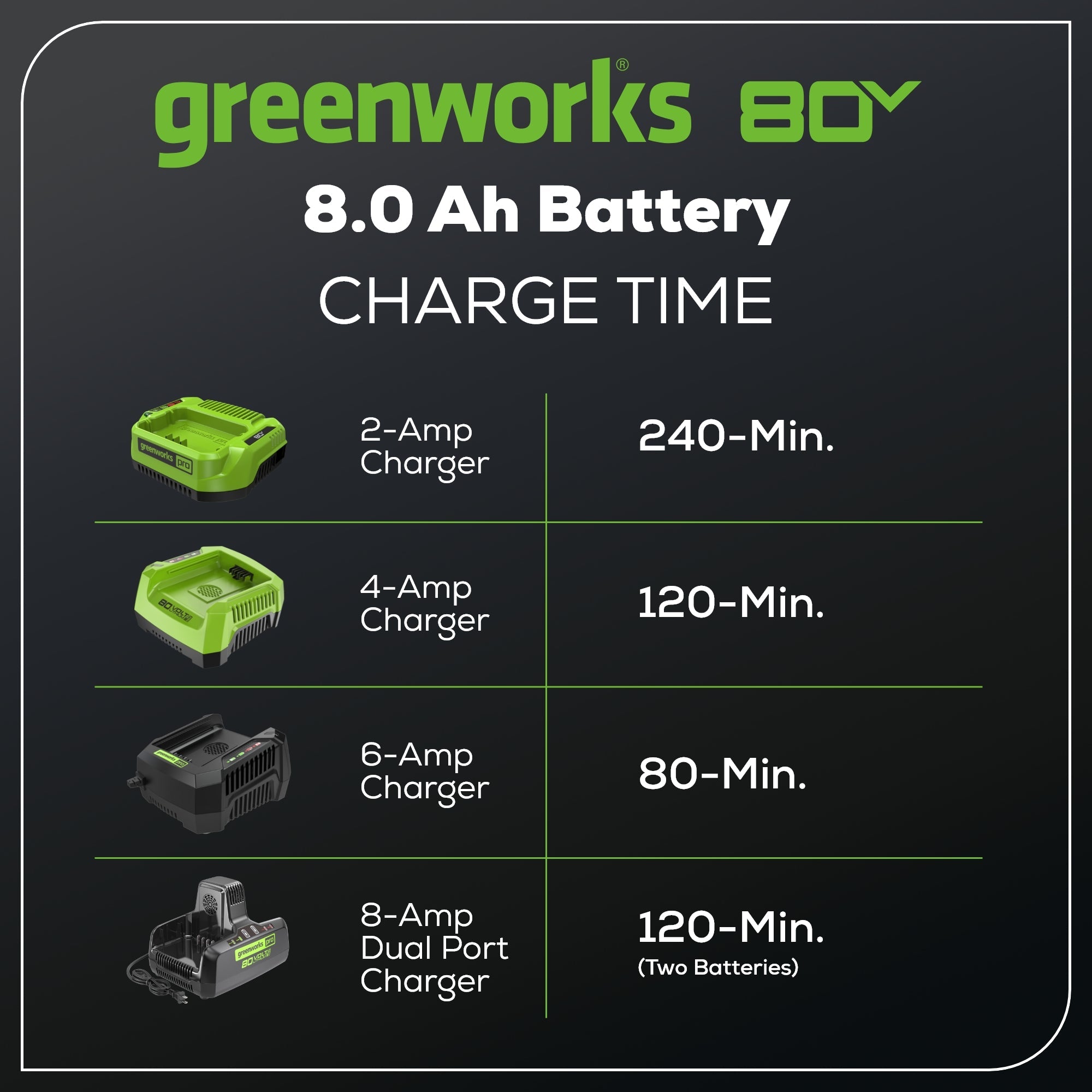- Compatible with 75+ Greenworks Pro 80V tools
