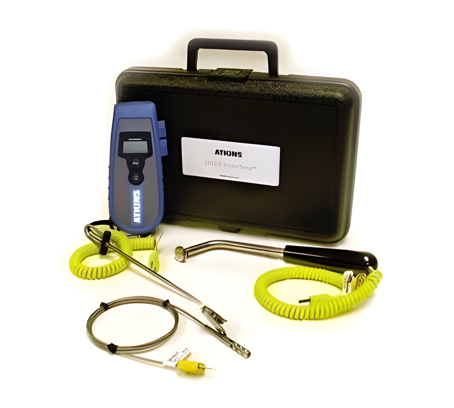 A: A complete temperature measurement kit that includes a thermometer and three interchangeable probes, offering flexibility for various temperature monitoring needs.