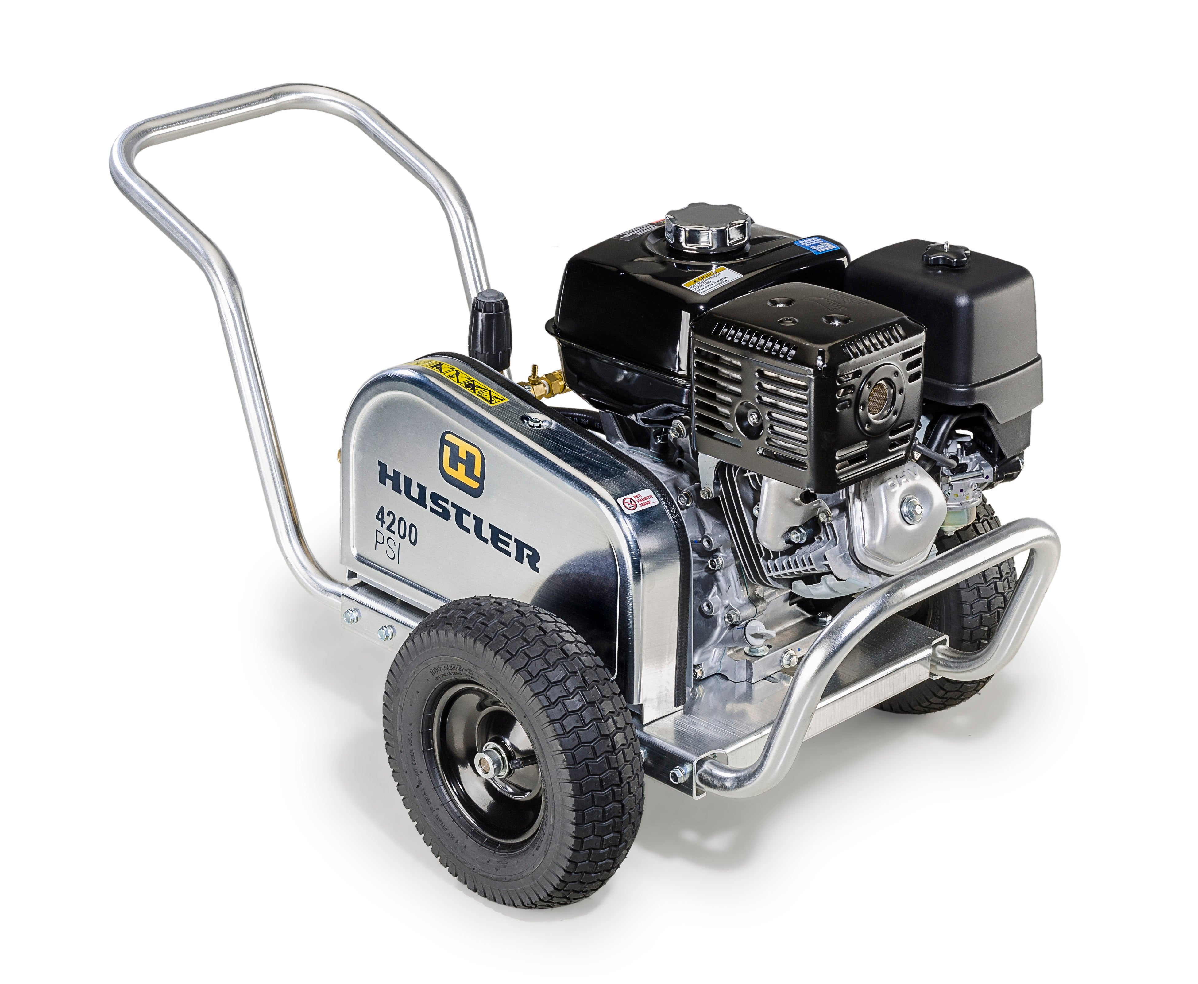A: The Hustler HH4240 is a commercial-grade pressure washer delivering 4200 PSI at 4.0 GPM, ideal for demanding cleaning tasks in fleet, property, and facility maintenance.