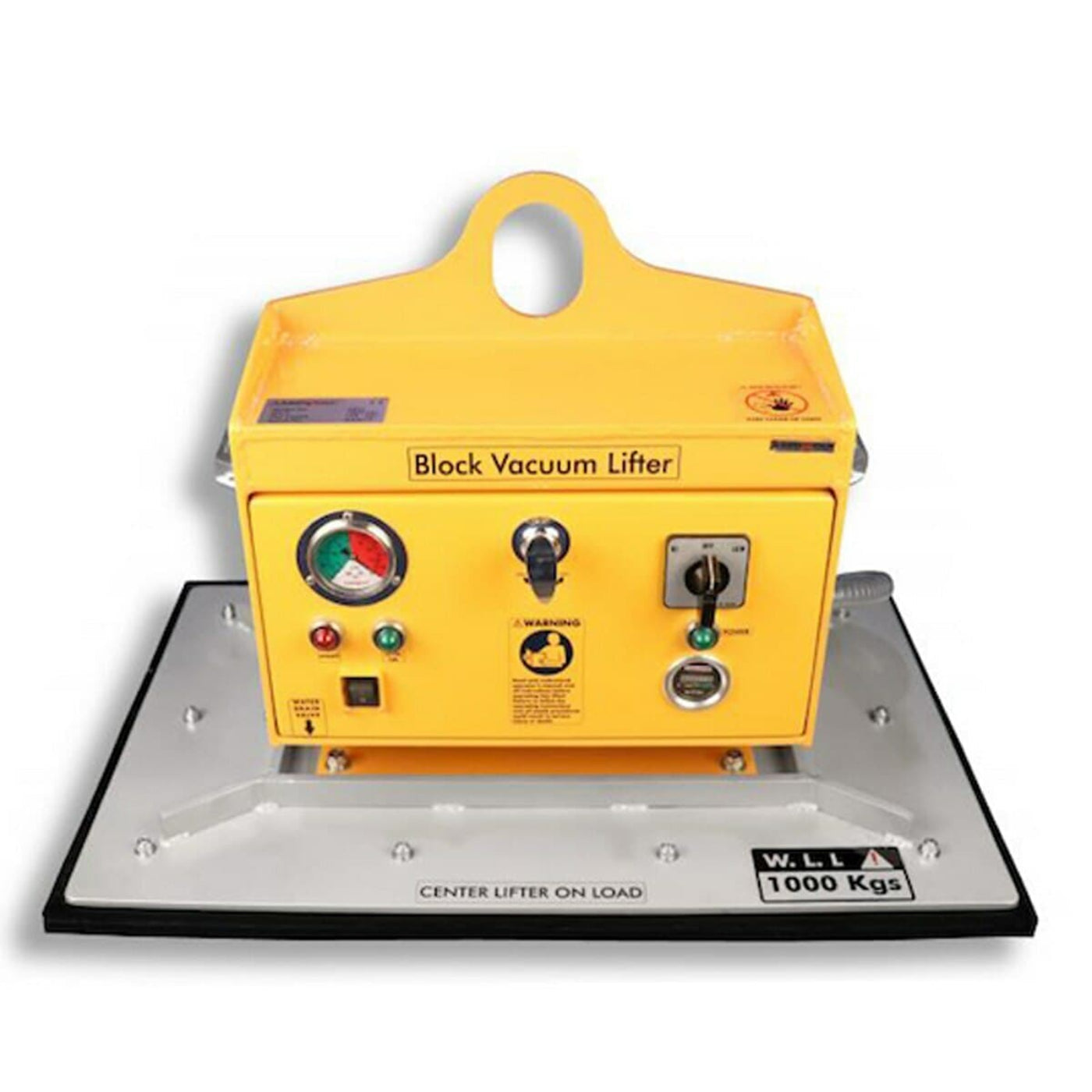 Aardwolf makes top of the line vacuum lifters for stone, pavers, and concrete. The Aardwolf Block Lifter 1,000kg is a powerful battery operated vacuum device for lifting, moving, handling, and laying stone, pavers, and concrete. What sets the block lifters apart from othe vacuum lifters is its abality to lift porous material. The paver slab lifter is equipped to move concrete, pavers, and other fairly porous material. Robust and compact, the Aardwolf Block Lifter can be suspended on all types of lifting equipment by means of load hooks, chains, cables, forklifts, and more. If you are lifting paving slabs, concrete slabs, or granite slabs, the Vacuum Block LIfter is for you.