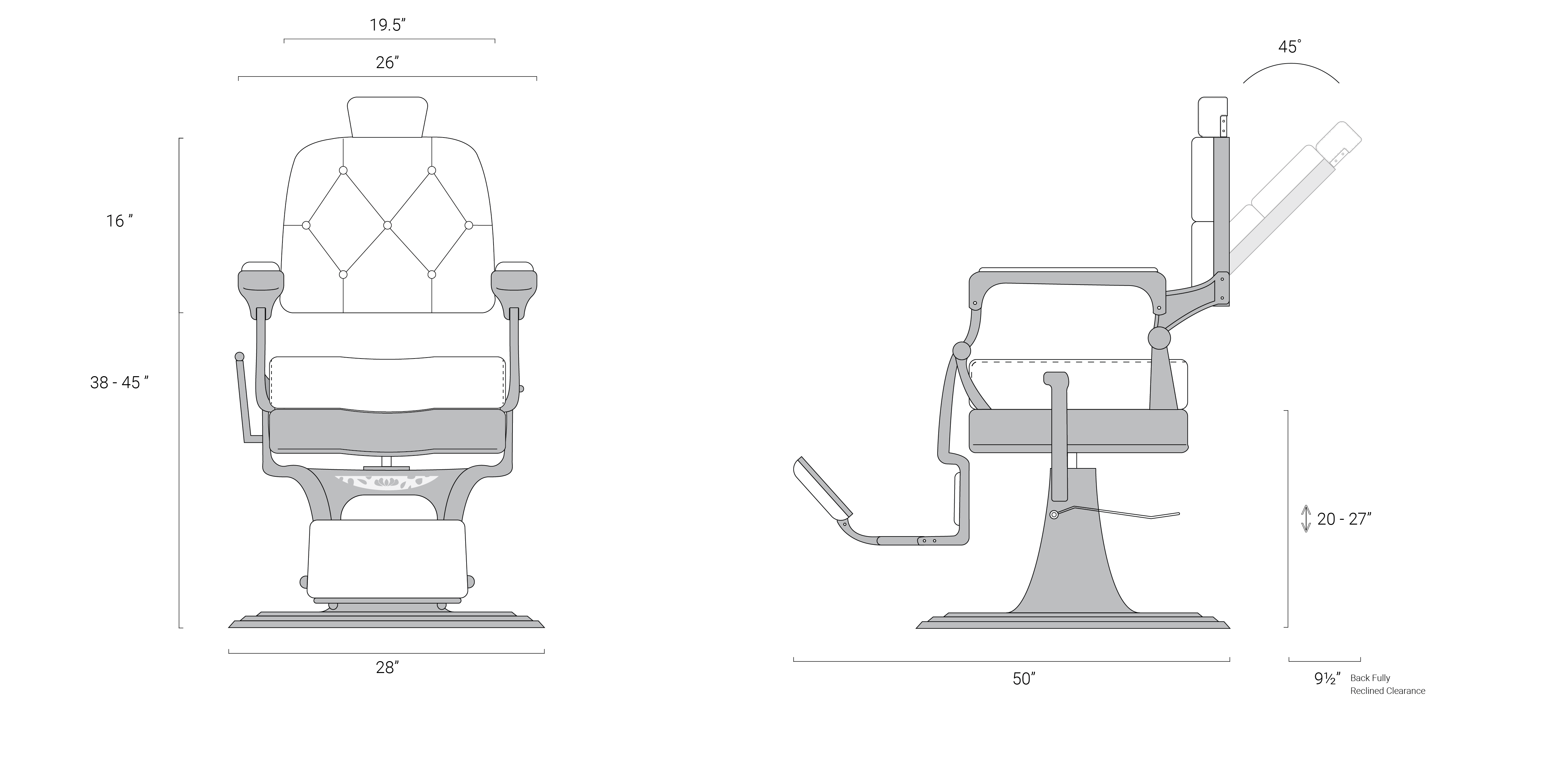 Full 45-Degree Recline – The chair reclines fully up to 45 degrees, allowing for the perfect position during traditional shaves or eyebrow services. The flip-up footrest adds extra functionality.