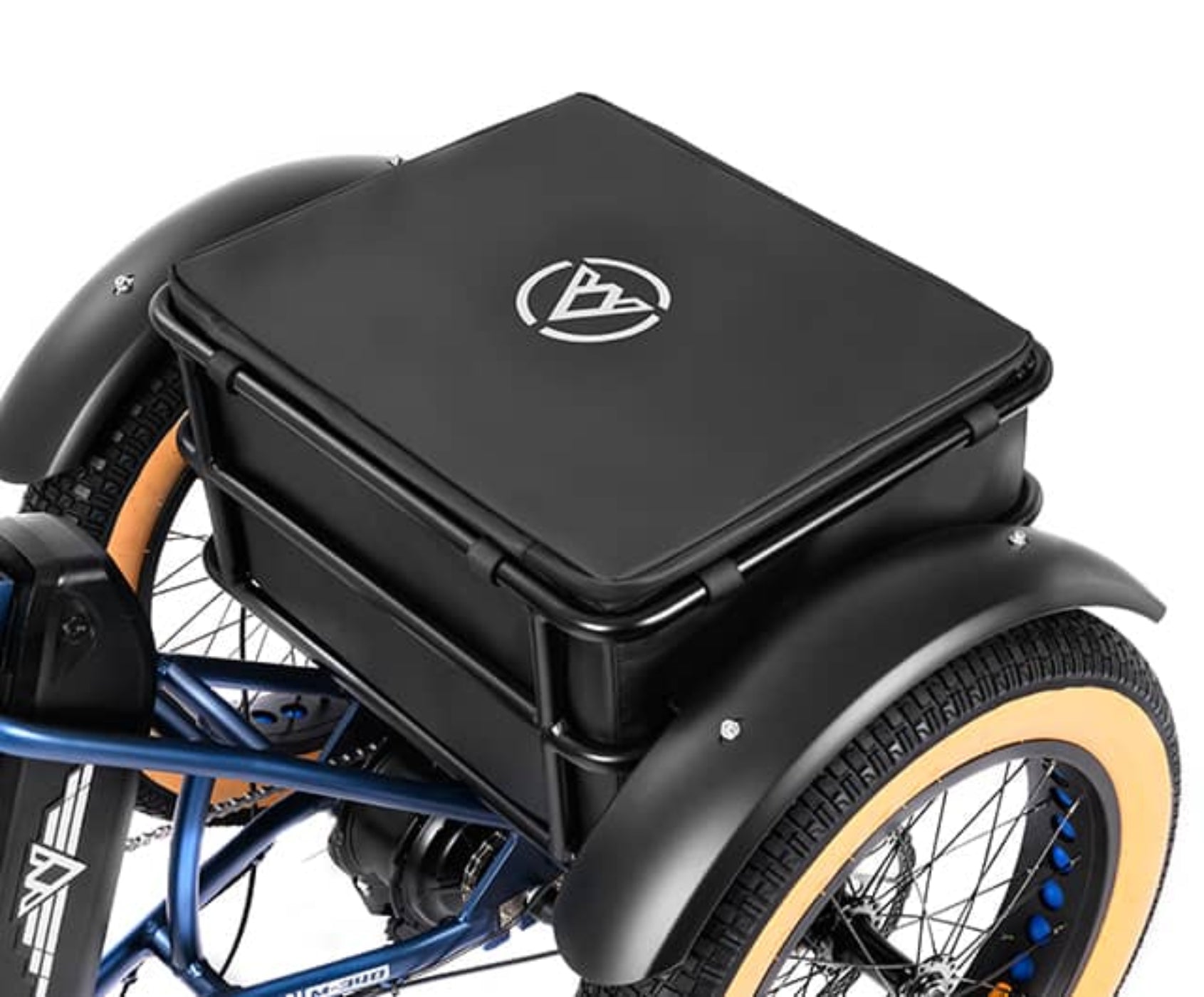Advanced Safety Features: The e-trike is equipped with hydraulic disc brakes for reliable stopping power, bright LED lights for increased visibility, and a robust frame for enhanced durability and safety.