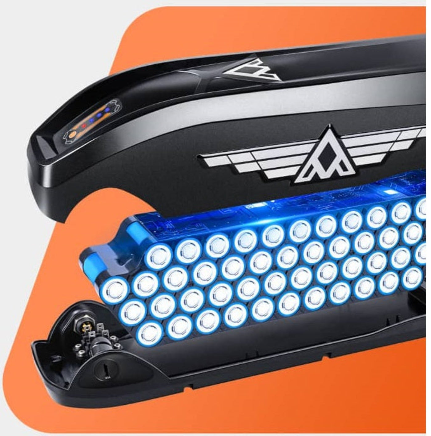 Battery: It features a 48V 20Ah (960Wh) lithium-ion battery with Samsung cells, providing a range of up to 60 miles on a single charge, depending on usage and terrain.