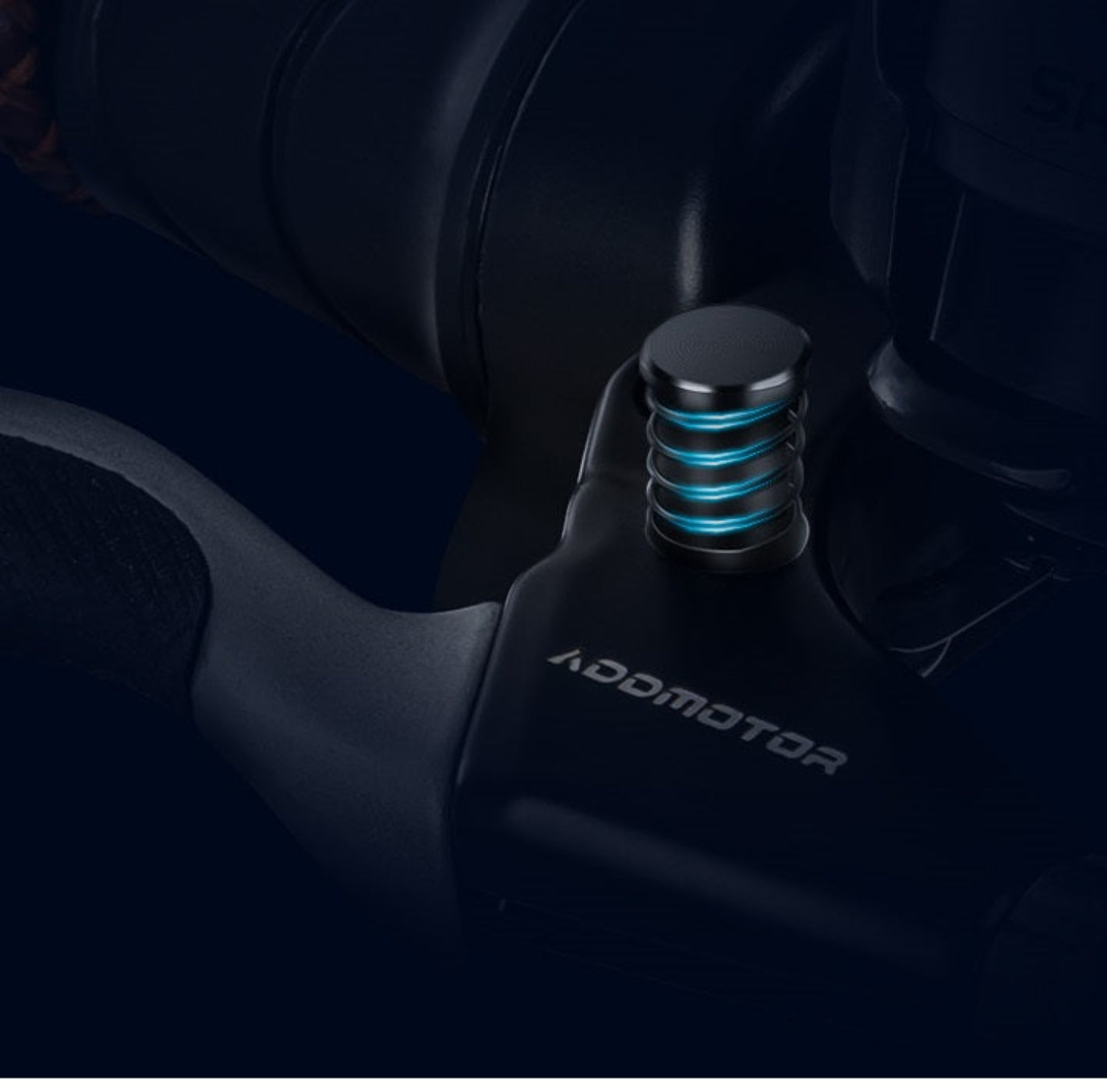 Display and Controls: Features the Addmotor EB 2.0 LCD display, providing essential ride information, and includes a right-hand half-twist throttle with a switch for easy speed control.