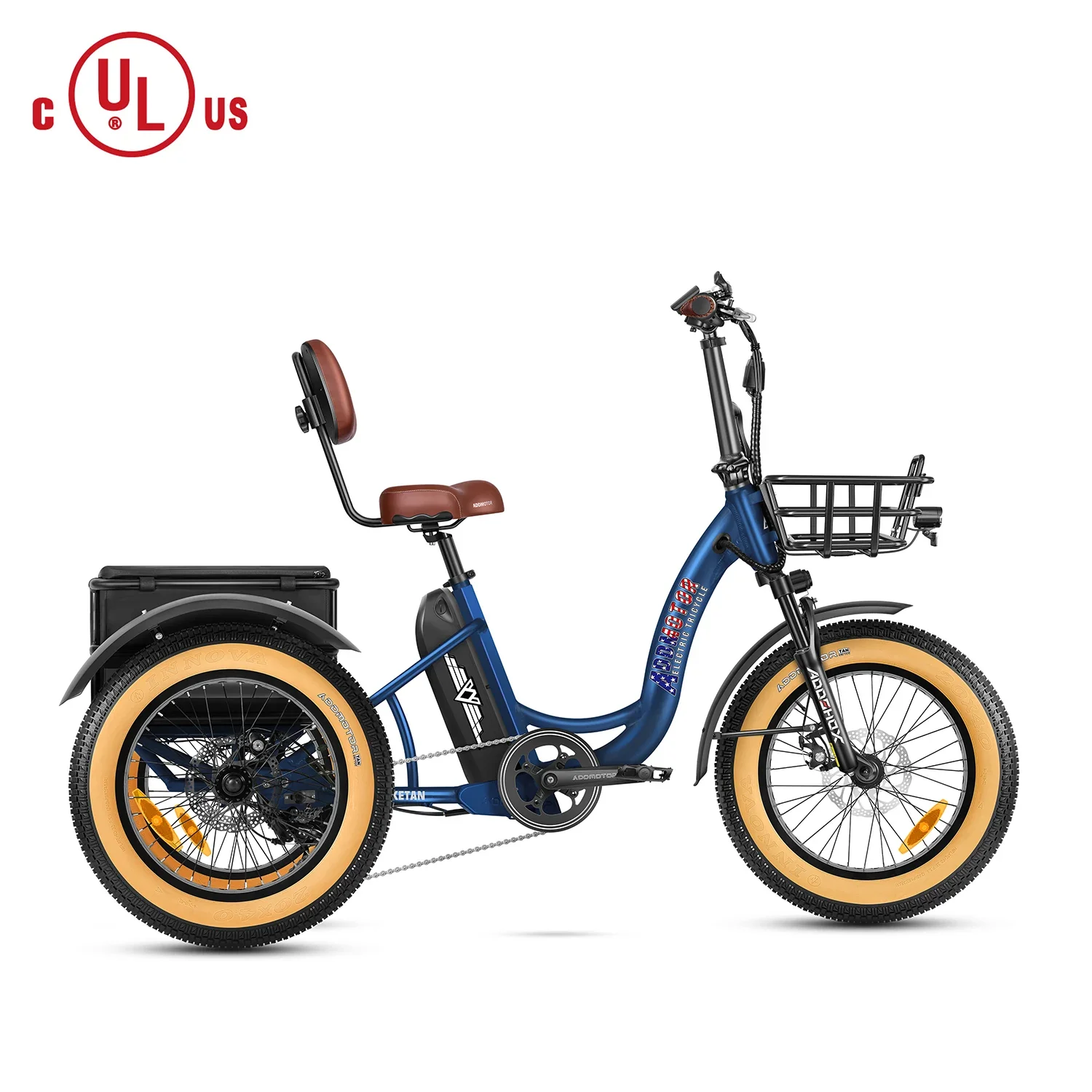 The Triketan II M-330 is a compact, fat-tire electric tricycle designed for enhanced stability and comfort, featuring a rear-mounted motor and ergonomic design, ideal for seniors and casual riders.