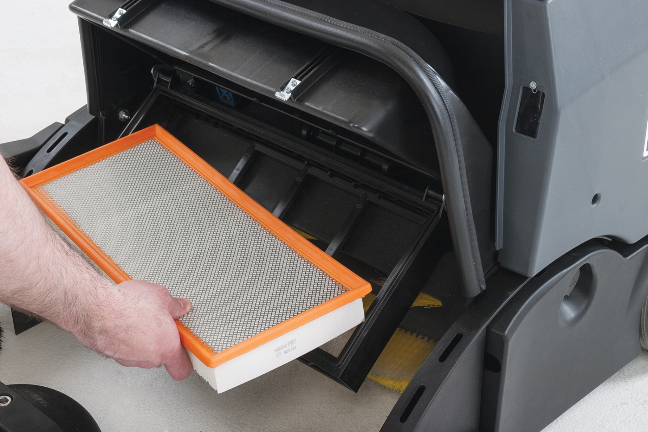 Direct throw design for effective sweeping on hard floors and carpets Dual side brooms for enhanced edge cleaning Quick and easy access to filters and batteries Compact and maneuverable for indoor and outdoor use Automatic propulsion for reduced operator fatigue |