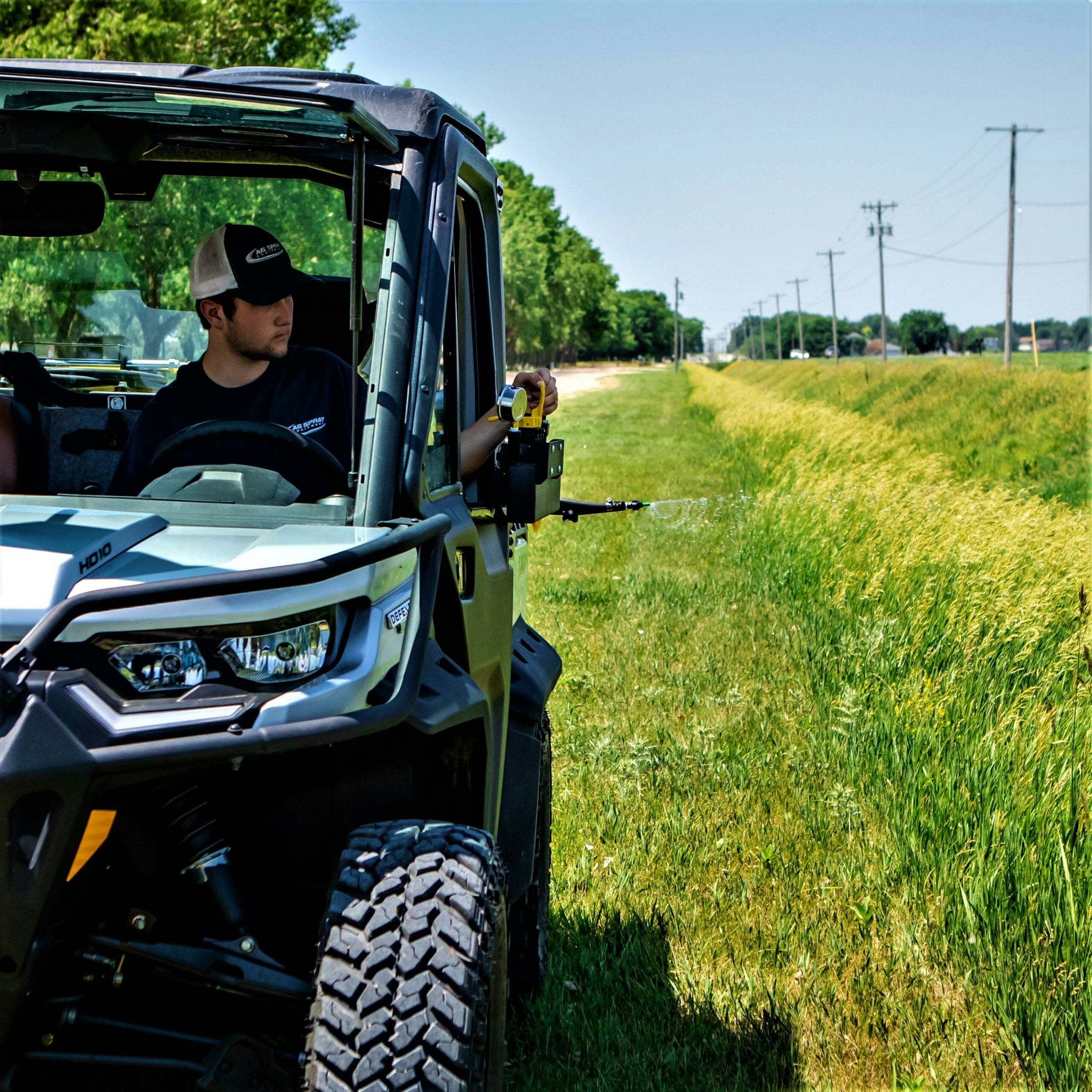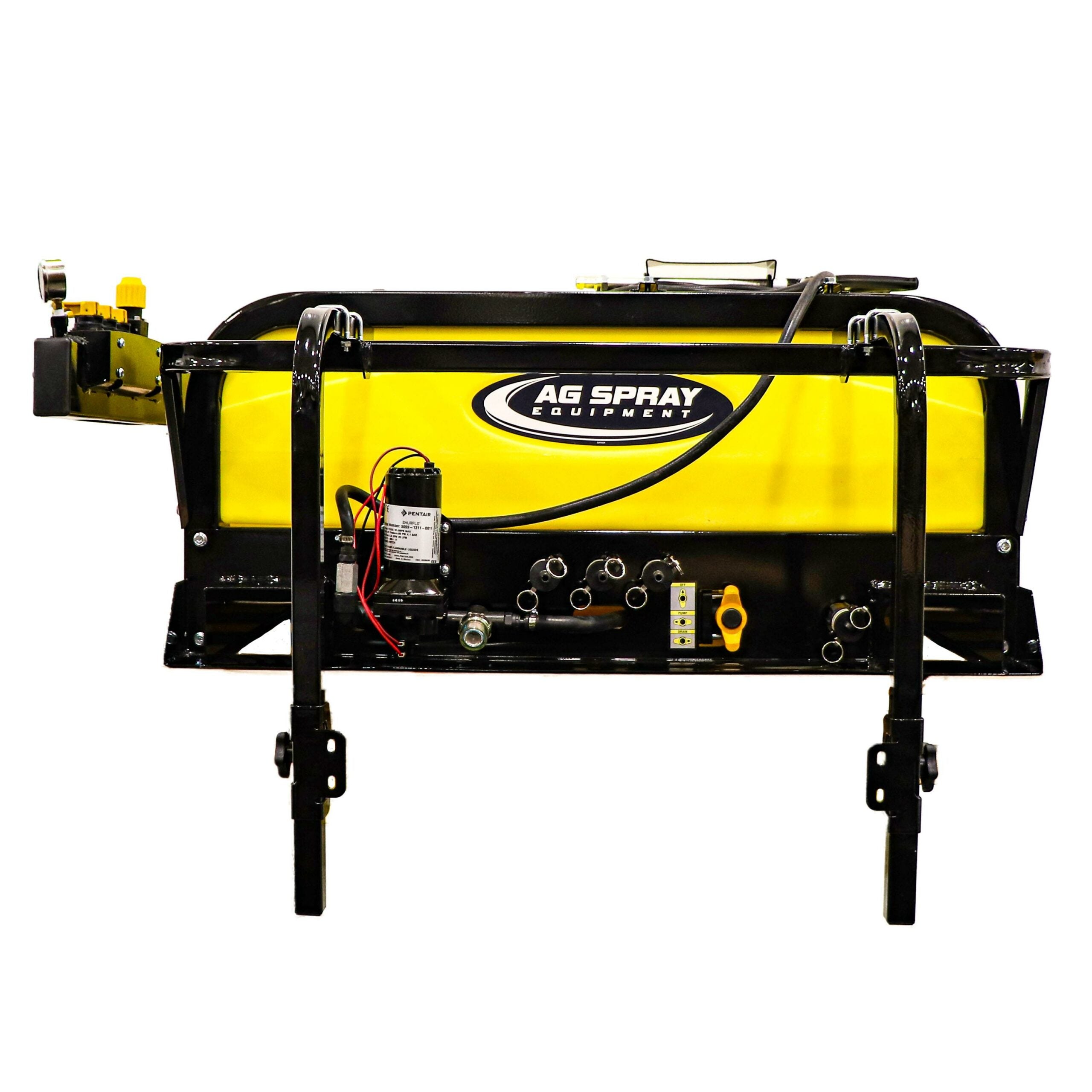 The 5303225 PROUTV Series 12 Volt configuration from Ag Spray is a professional series 65 gallon sprayer designed for the bed of an UTV that is built to handle any job whether it’s utility, municipality, rangeland or ag. The 12 Volt version is designed to allow the tailgate to be closed on most models of UTV. The conveniently positioned swing control arm rotates next to UTV cab for easy sprayer control. The control arm has a spring loaded position detent to allow the operator to easily enter and exit the machine and stow the control arm when not in use. The steel base has fork lift pockets incorporated for convenient installation and removal. The poly tank is built with a molded-in tank baffle with sloped floor and a molded-in outlet fitting for easy and complete clean out. The Shurflo 12 Volt pump is rated up to 5.3 GPM with demand switch and up to 60 PSI. The pro series long range handgun with adjustable pattern tip distributes up to 38 feet of horizontal spray and up to 27 feet of vertical spray and comes with 25 feet of 3/8 inch hose. Hand wand spray pattern is controlled by how far the trigger is depressed which allows the operator to change between straight to wide fan pattern to meet your application needs. Combined with our 1 year warranty, AG SPRAY PROUTV Sprayers will deliver dependable use when you need it most.
