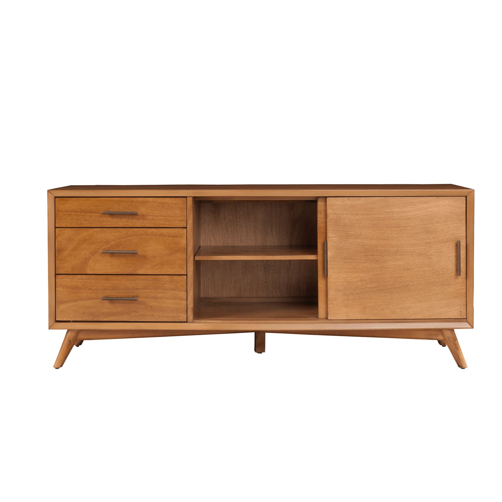 With generous storage space, it keeps your media equipment organized and your living space clutter-free, while the sleek design and premium construction make it a focal point in your home. Elevate your entertainment experience with the Alpine Flynn Large TV Console in Acorn and redefine the way you enjoy your favorite shows and movies.