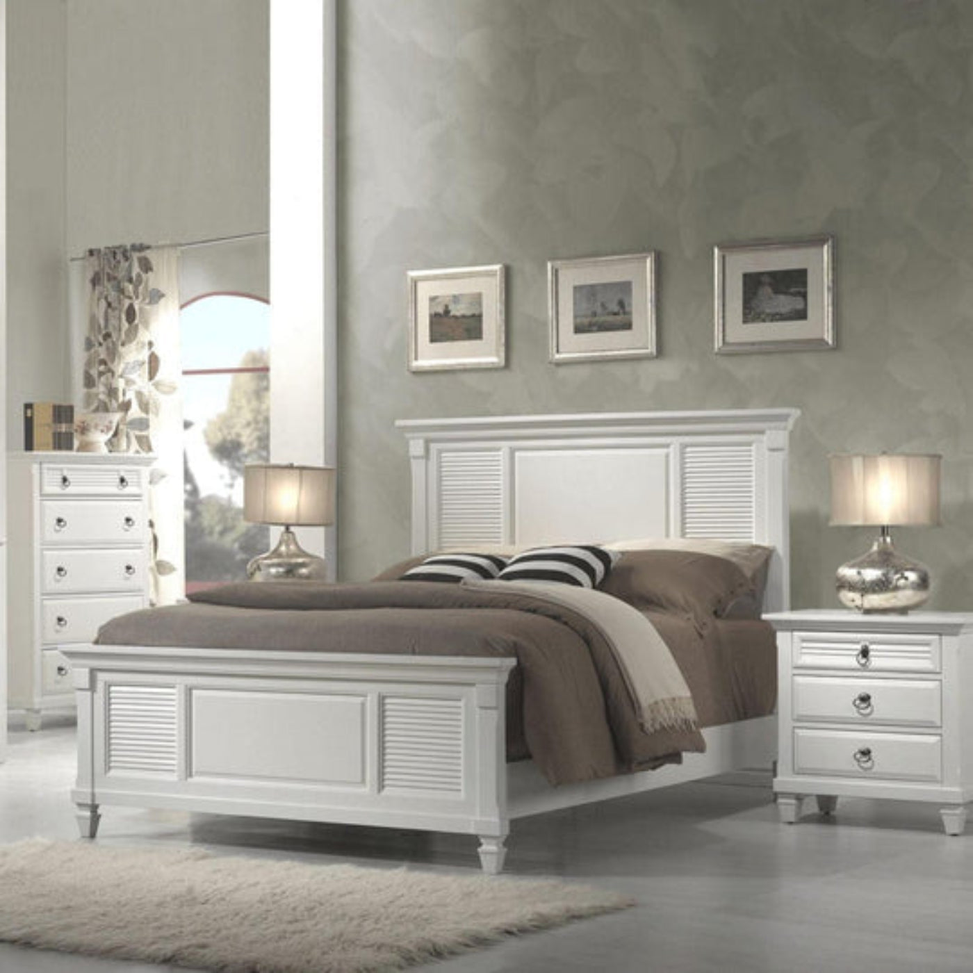 The neutral white finish complements a wide variety of bedroom styles, including coastal, modern farmhouse, and traditional.