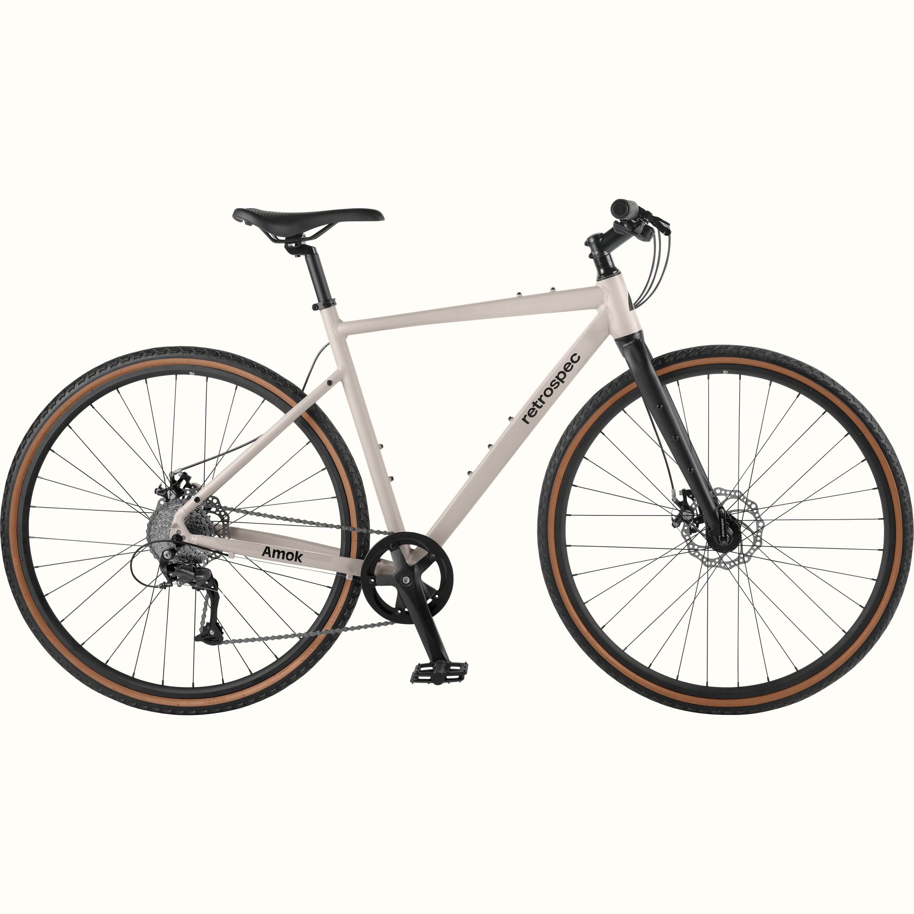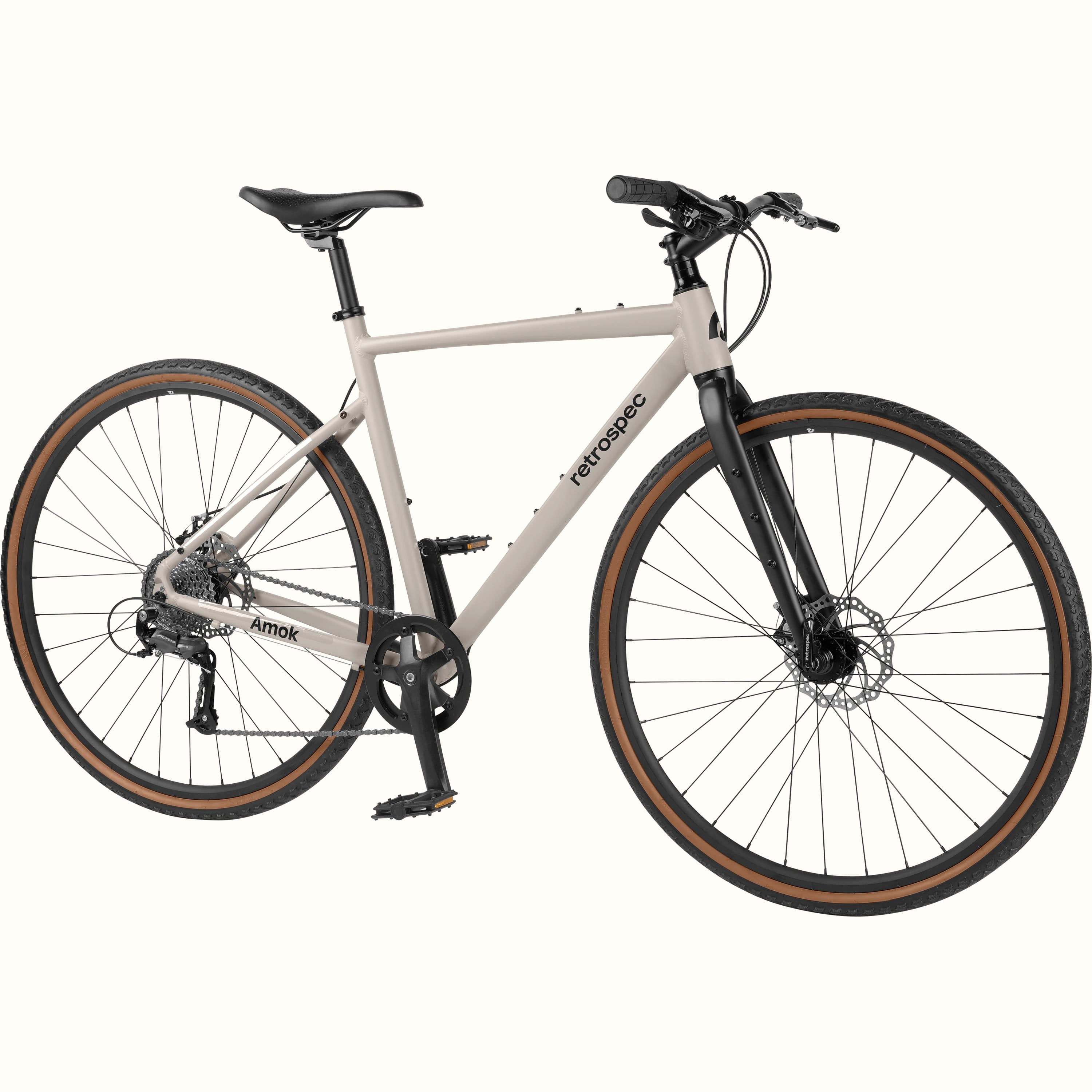 A: The Amok is an 8-speed gravel bike built for versatility and durability. It’s designed to handle daily commuting, fitness rides, and weekend off-road adventures.