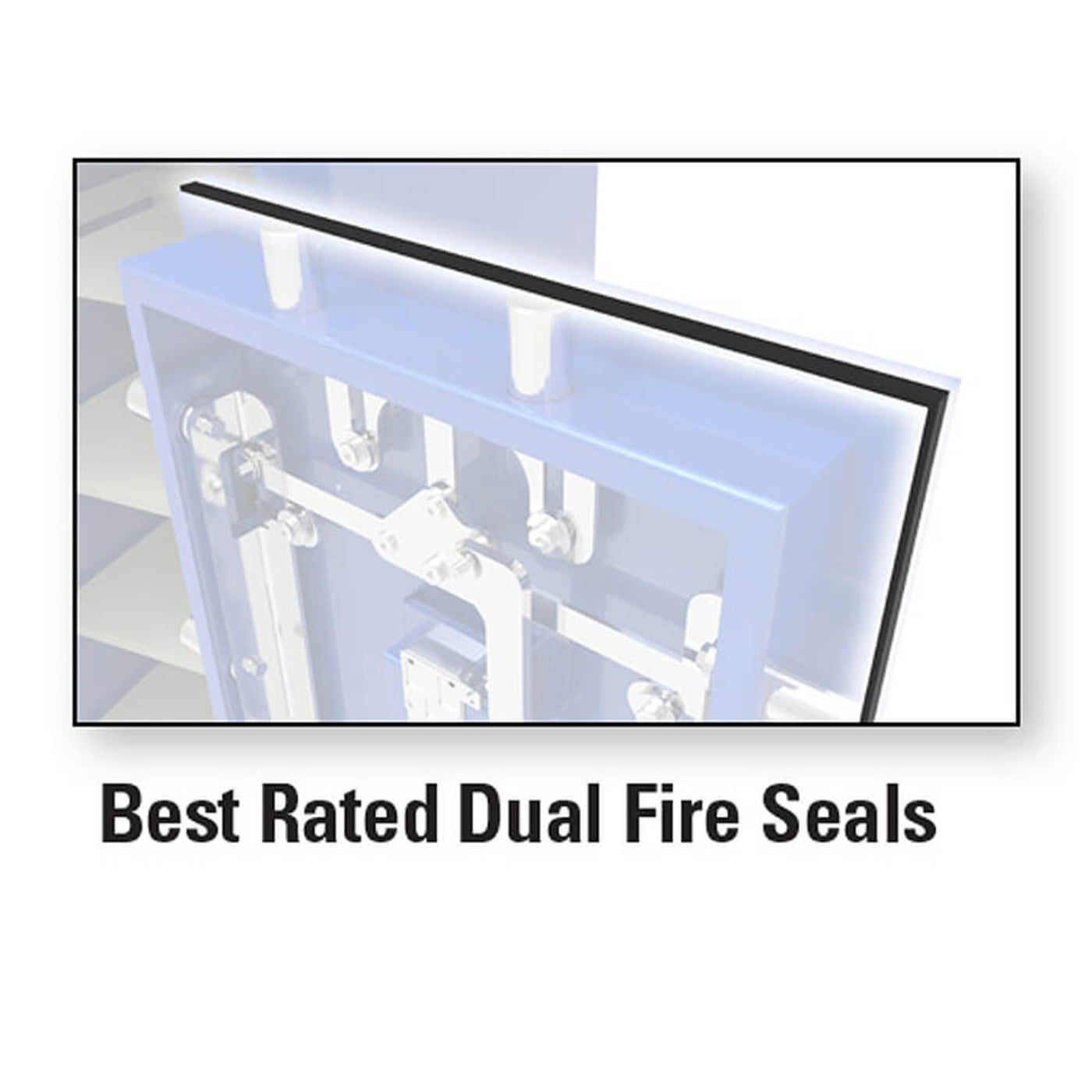 The AMSEC BFX6030 has DryLight in between the steel of the walls and door, which is an advanced poured concrete insulation material that eliminates the use of gypsum board and creates a dry and seamless barrier providing ETL verified fire protection of 120 minutes at 1200°. It's proven to maintain interior temperatures of less than 350° and has 2 stage dual fire seals with a silicone seal on the door jamb and an expandable Palusol and Silicone seal on the door that'll keep the smoke out.