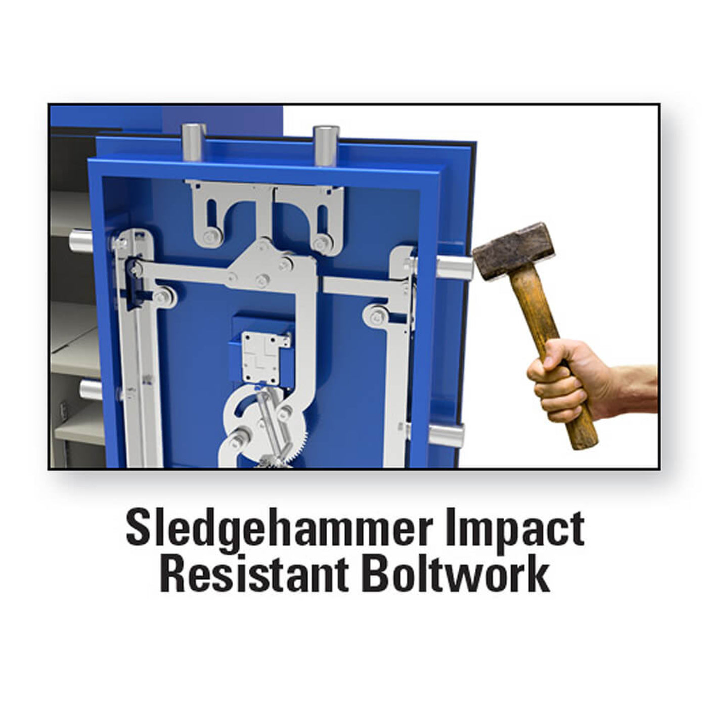 The AMSEC BFX6030 gun safes are considered the most unique gun safes in the industry with its 1/2" steel plate door combined with 1" DryLight insulation, 2" total wall thickness on all sides also filled with DryLight insulation and the body has two layers of steel, a 11 gauge outer steel liner and 12 gauge inner steel liner, for exceptional fire and security protection. With all that steel in the walls we end up with a total thickness of 7 gauge! AMSEC has advanced independent locking bolt works that are sledgehammer and punch-proof with all individual locking bolts operating separate from each other on a 4-way gear driven boltwork locking system. On the AMSEC BFX6030 you get fourteen corrosive resistant 1.5" solid steel locking bolts that lock into a double reinforced steel frame making this the industry's best pry-resistant boltwork.
