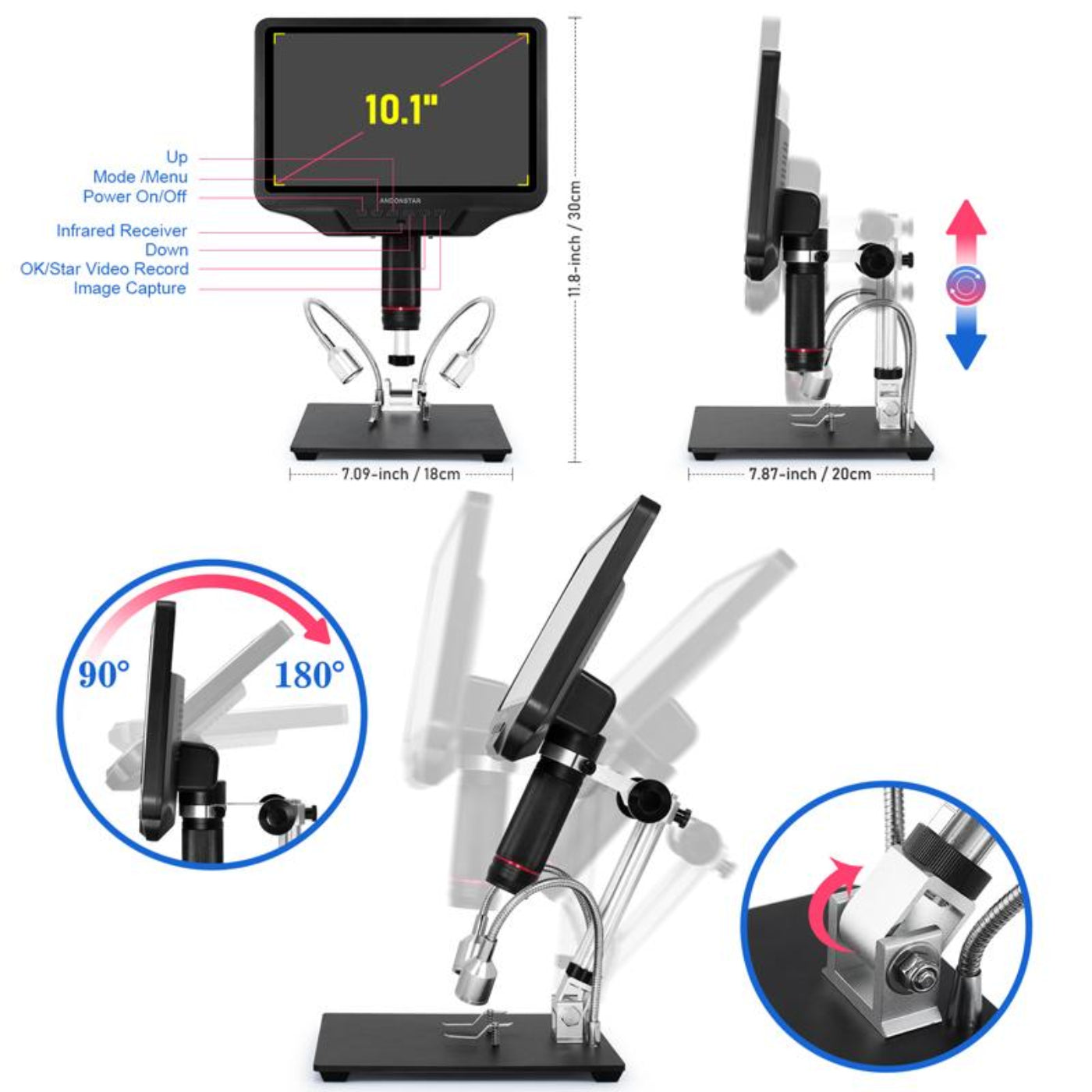 A: The Andonstar AD409 comes equipped with a 10.1-inch display, providing a large viewing area to inspect intricate details, making it ideal for soldering, assembly, or quality control.