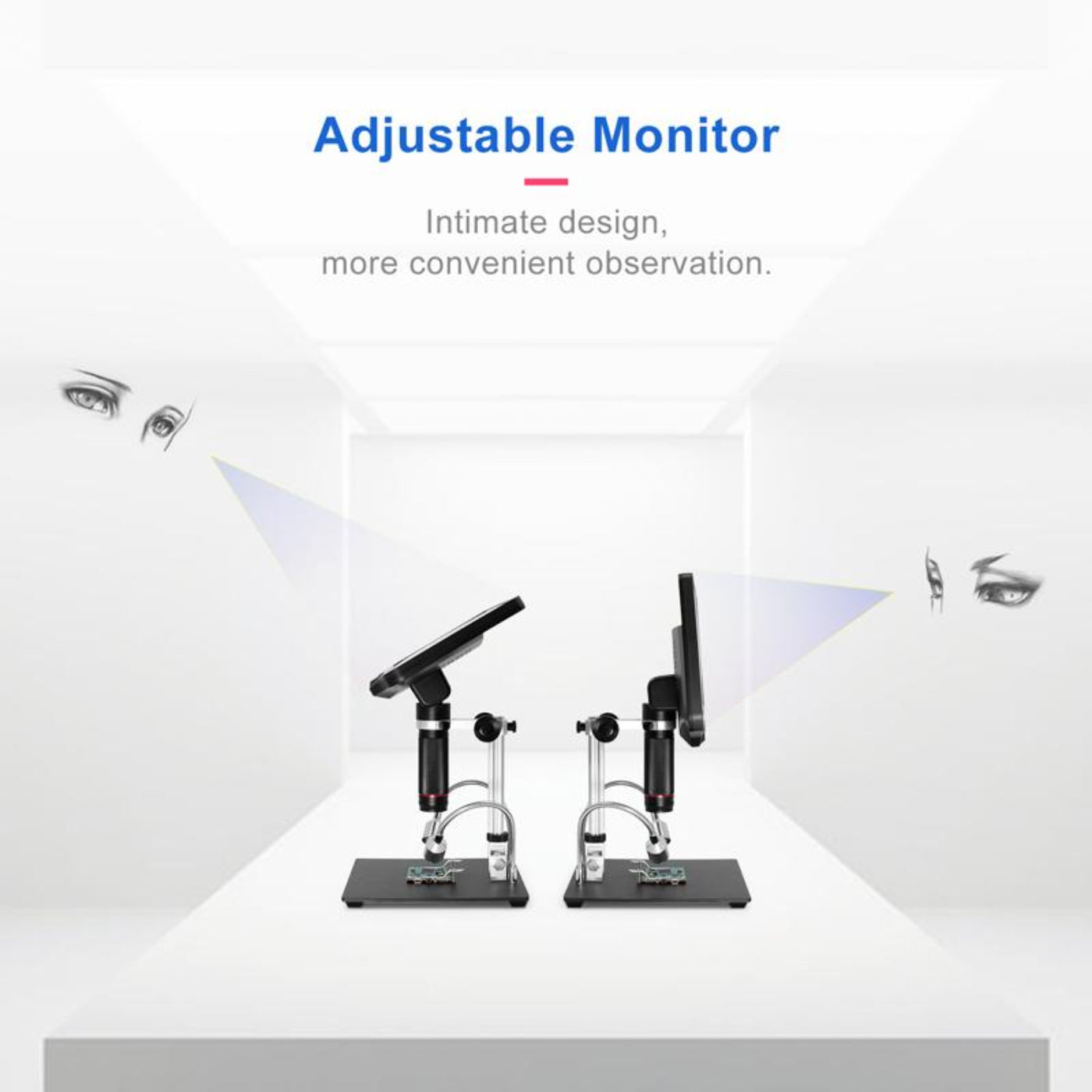 With a 10.1-inch large adjustable LCD screen, the AD409 digital microscope comes with a larger screen and more advanced firmware than the AD407 digital microscope, providing users with a better PCB inspection experience. The magnification of AD409 can reach up to 300X and allows you to view the smallest solder joints on the large 10.1-inch display or on the external monitor connected with the microscope.