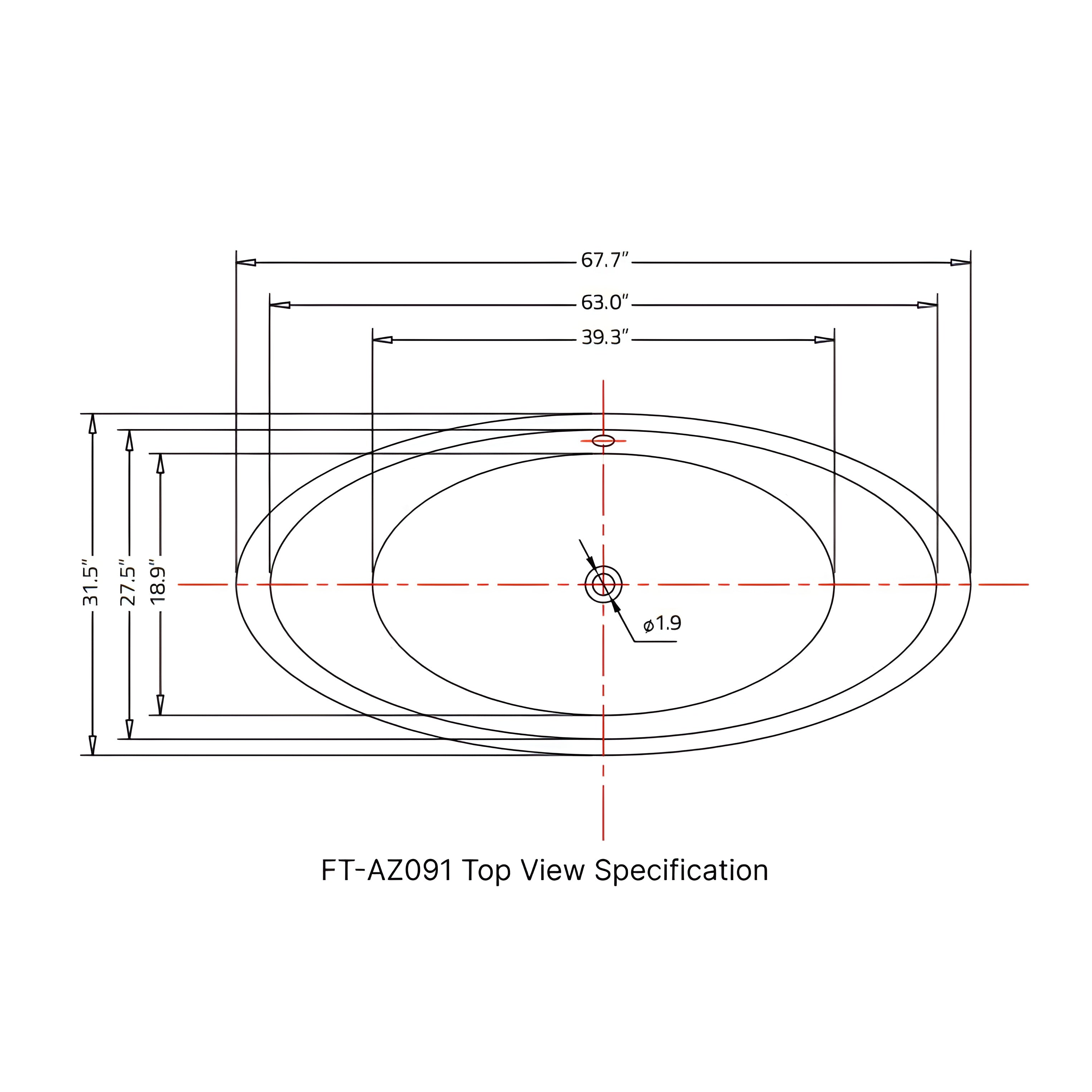 - Bathtub dimensions: 68 in. L x 31 in. W x 31.5 in. H