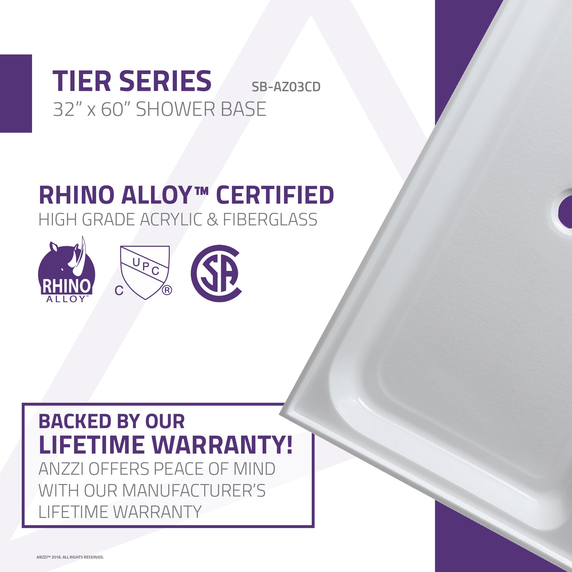 Q: What is the Anzzi Tier 32 x 60 in. Single Threshold Shower Base in White (SB-AZ03CD)?