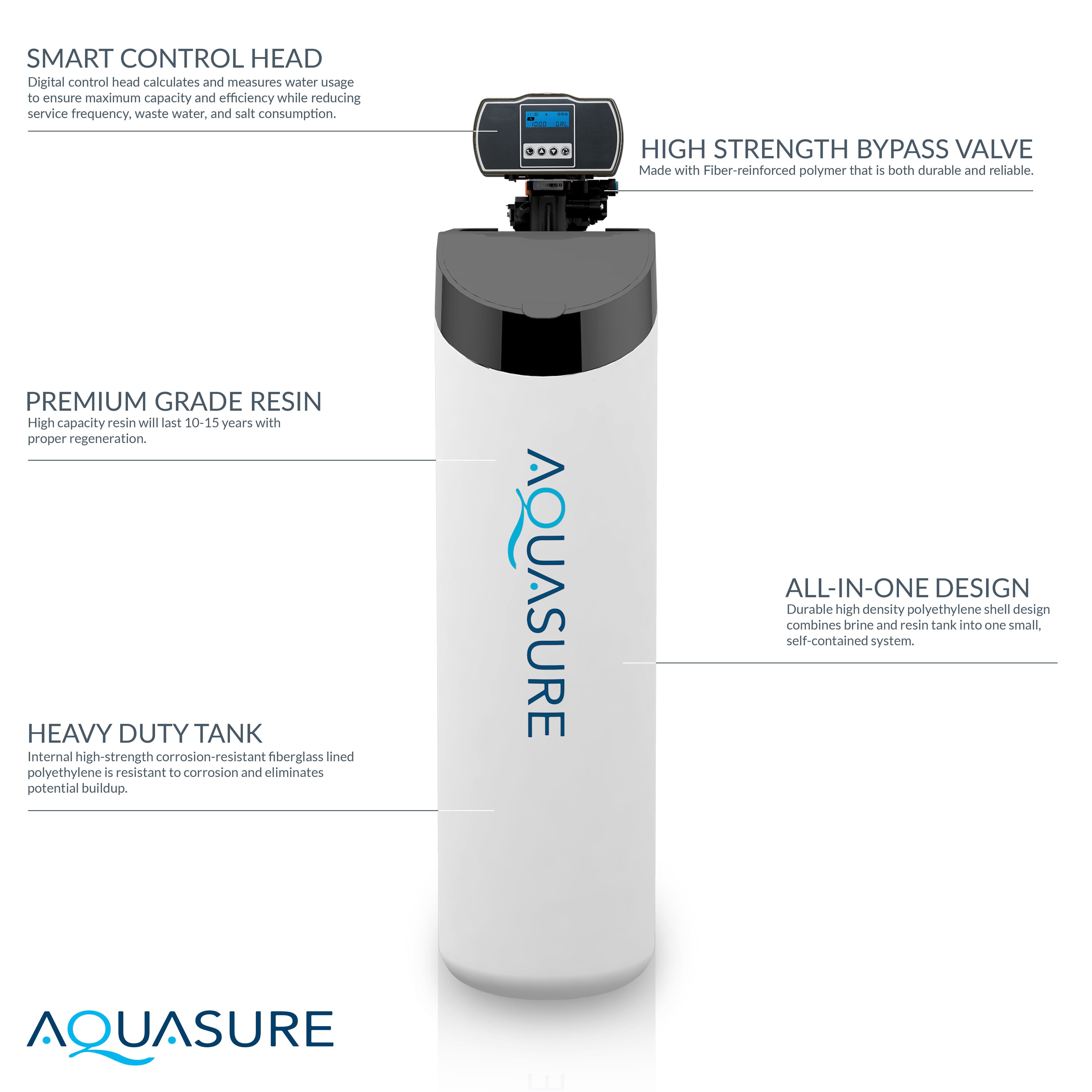 Q: What does the Aquasure Harmony Lite 34,000 Grains All-in-One Cabinet Style Water Softener do?