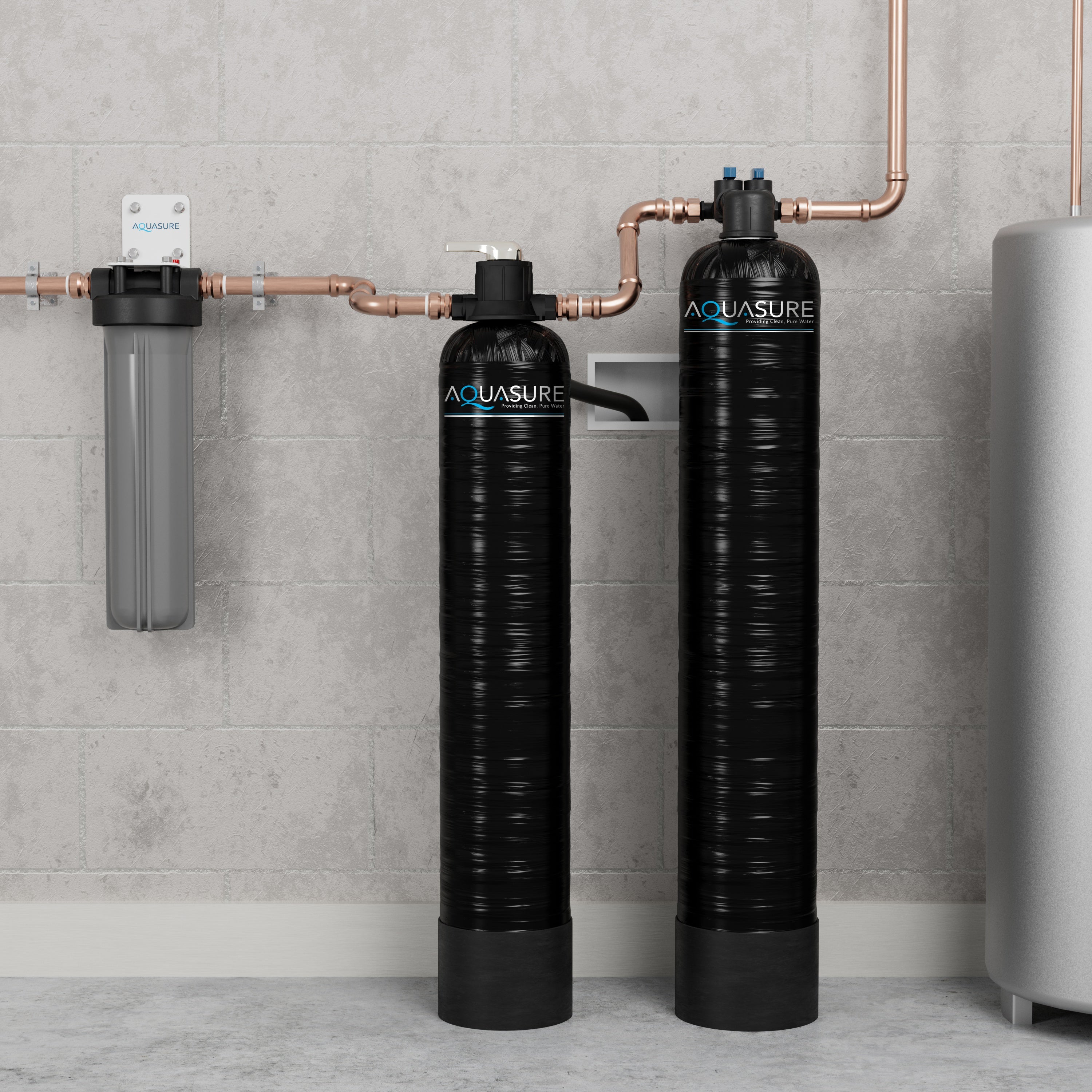 The Aquasure Serene Series Whole House Water Conditioning System is an alternative solution for improving your water quality without the hassle of electricity or salt. Designed for homes with 1-3 bathrooms, this system delivers salt-free water to your entire home while protecting your plumbing and appliances from harmful scale build-up. With its 5-stage filtration process, it removes 99% of contaminants. Experience scale-free plumbing, pristine water quality, and a maintenance-free lifestyle with Aquasure.