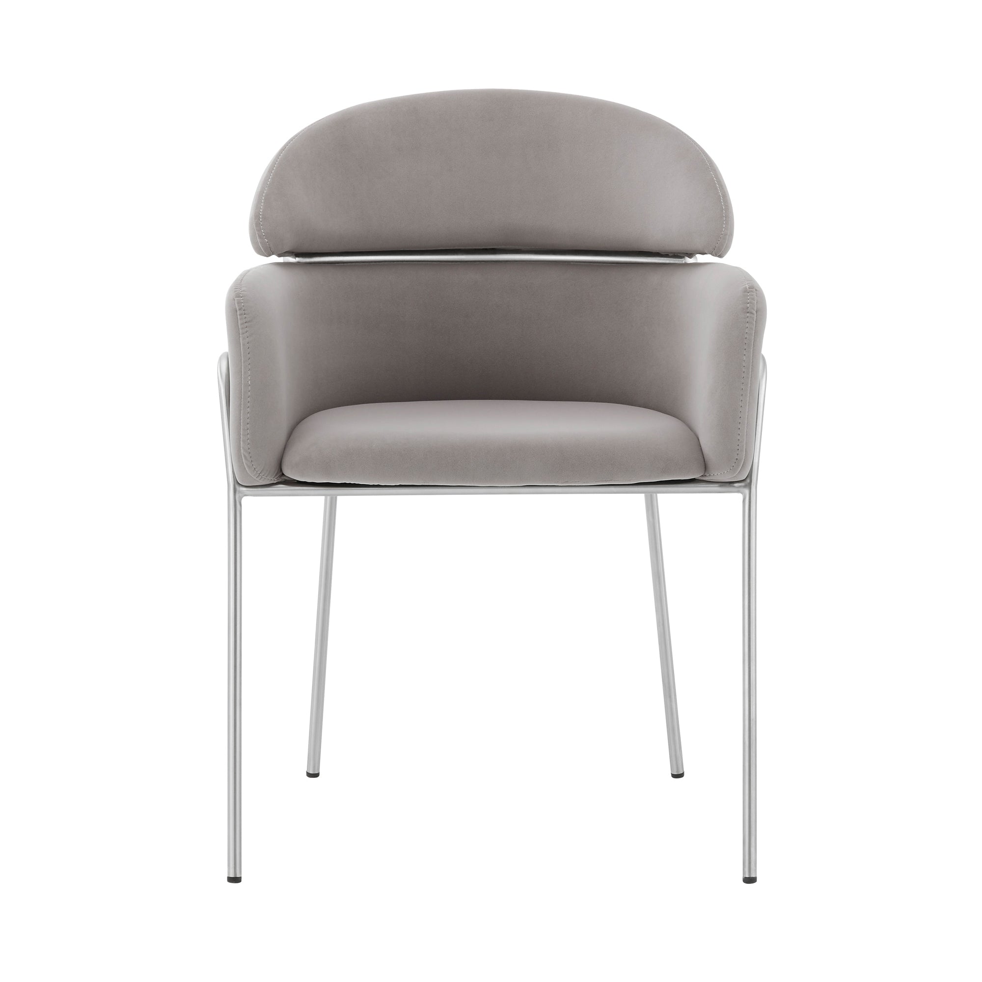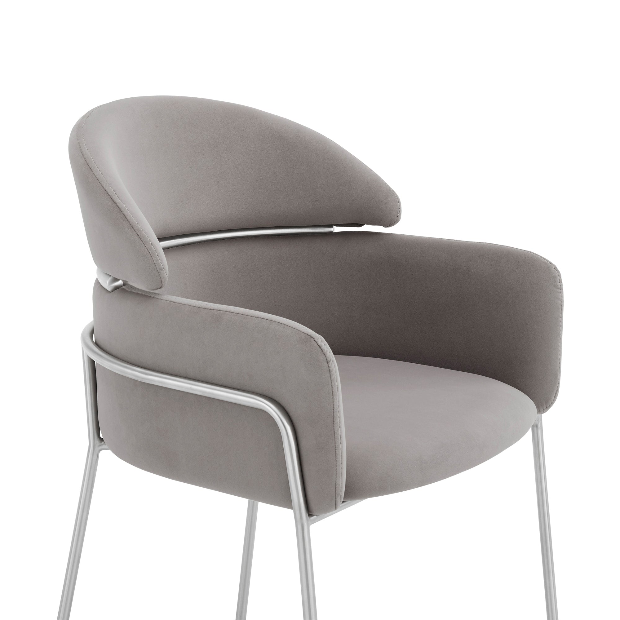 The Cressida and Portia 5-Piece Dining Set from Armen Living combines unique design with practicality, making it an ideal addition to your home. The Portia dining chairs feature wide seats, high backs, and supportive arms that provide stability and security, while the plush foam-padded cushions ensure lasting comfort. Their stainless-steel frames enhance both the aesthetic and strength of the chairs, and they are available in Gray or Blue fabric upholstery to suit your preference.