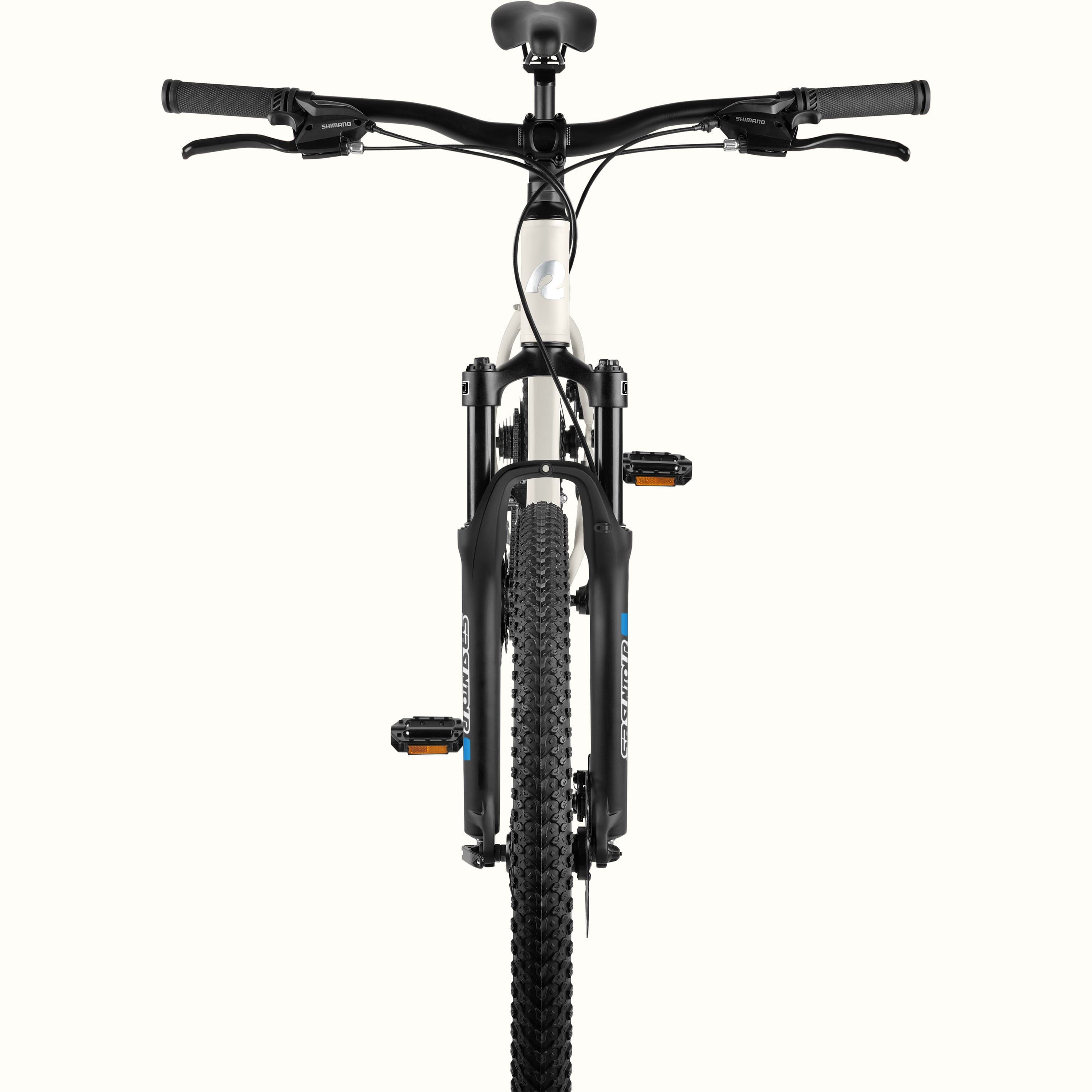 A: The Retrospec Ascent 27.5" Mountain Bike is a versatile, durable bike designed for both off-road adventures and everyday commuting. Featuring a lightweight 6061 aluminum frame, it’s equipped with a 21-speed Shimano drivetrain, EZFire shifters, and a 100mm suspension fork to tackle rough terrain. The bike also includes all-weather mechanical disc brakes and 27.5-inch knobby tires for superior grip and stability, ensuring a smooth ride on various surfaces.