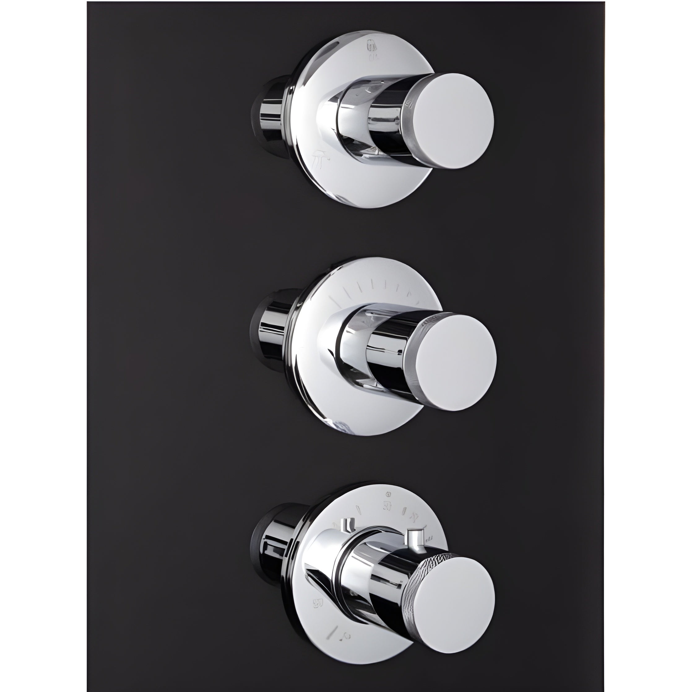 A: The shower features tempered glass, stainless steel accents, and a durable acrylic base, ensuring longevity and a contemporary aesthetic.