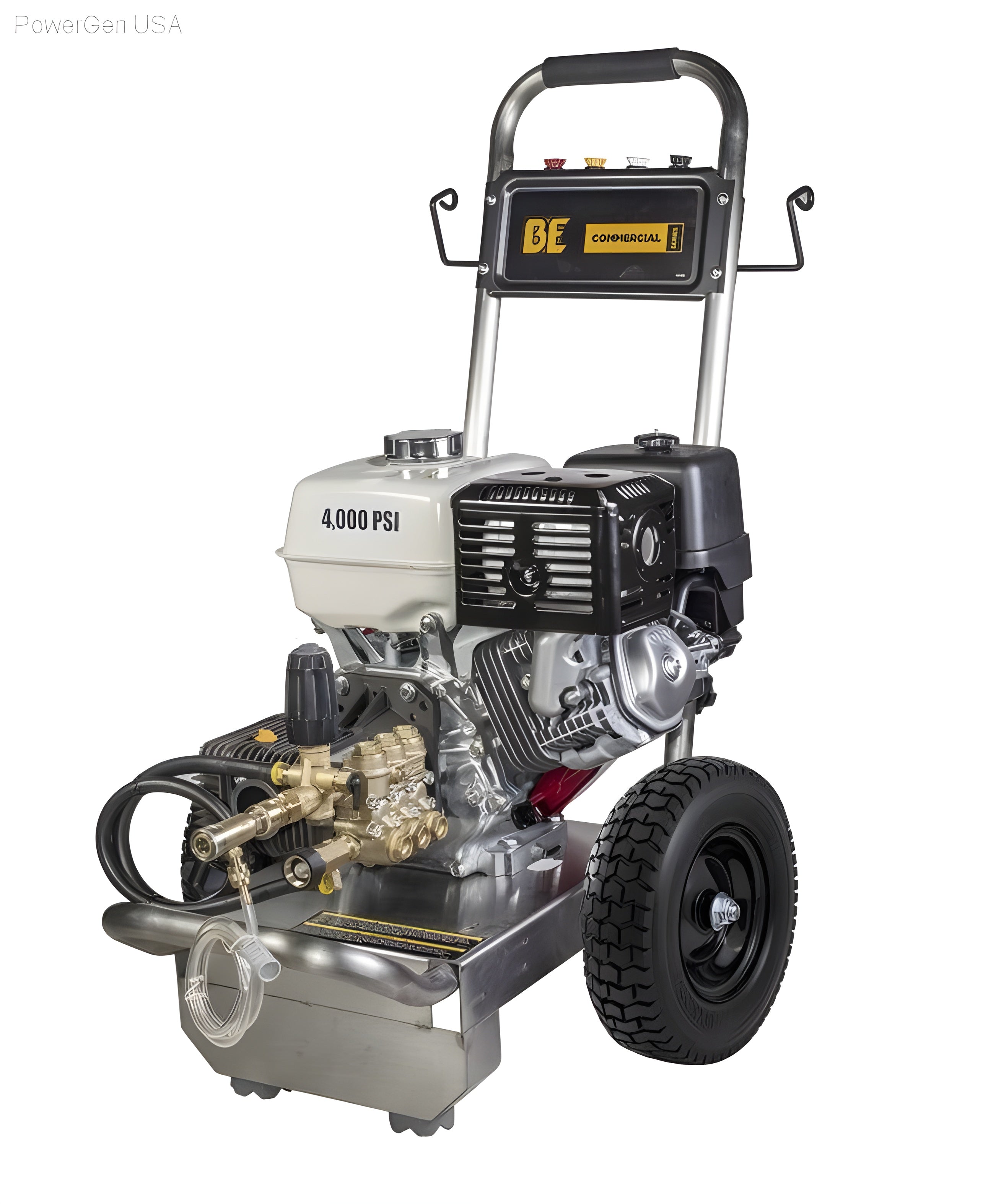 Q: What is the BE Power Equipment 4000 PSI 4.0 GPM Gas Pressure Washer with Honda GX390 Engine and Comet Triplex Pump - PE-4013HWPSCOMZ?