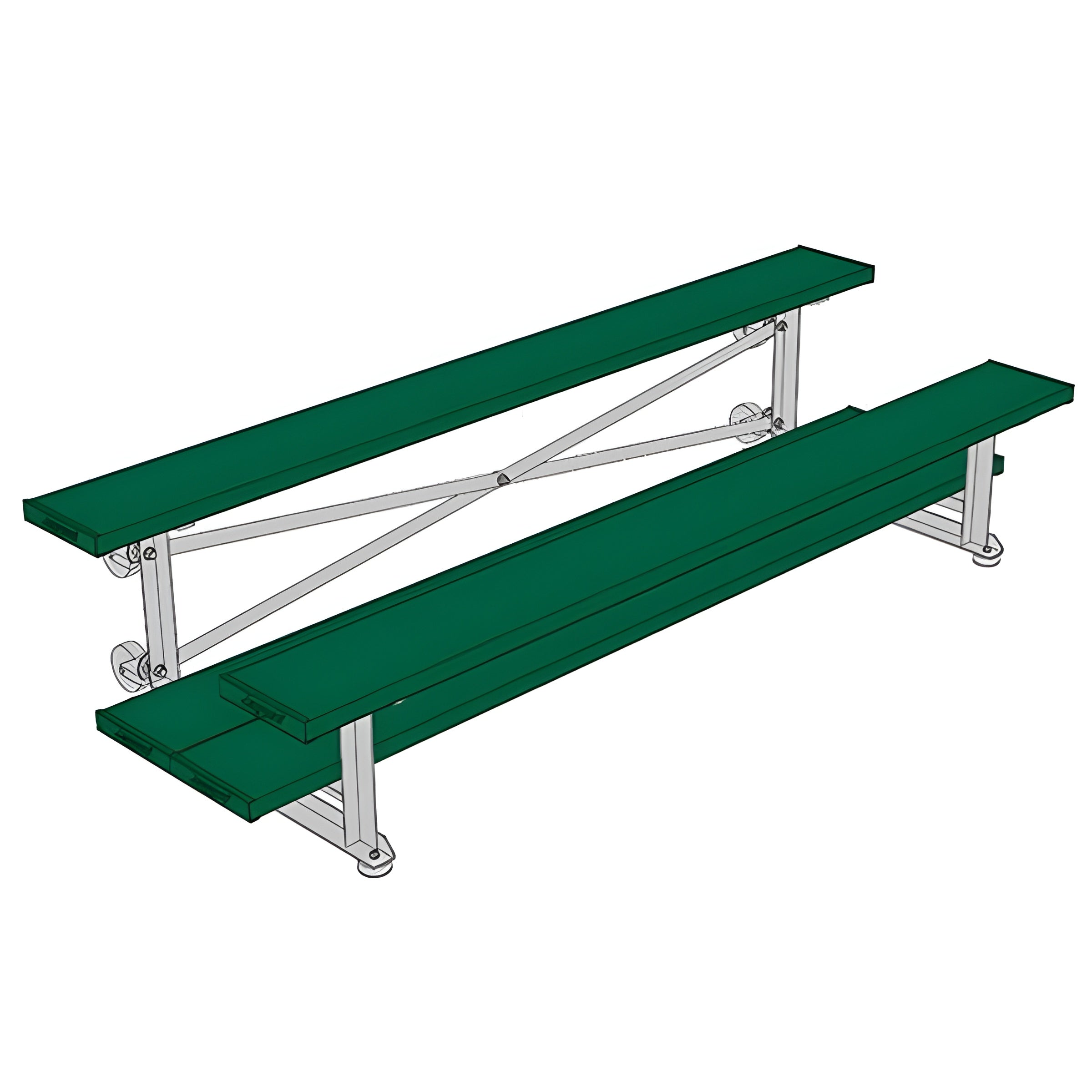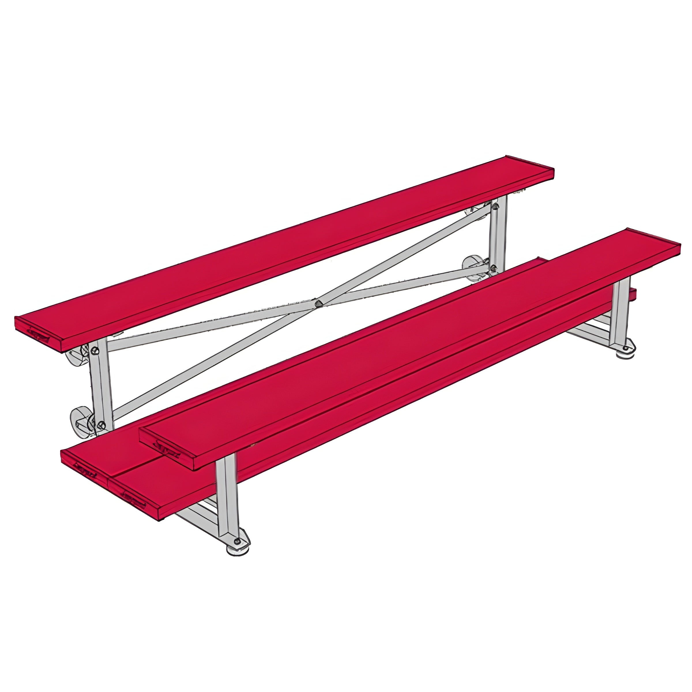 Lightweight and stable aluminum bleachers tip-and-roll for easy mobility and storage.