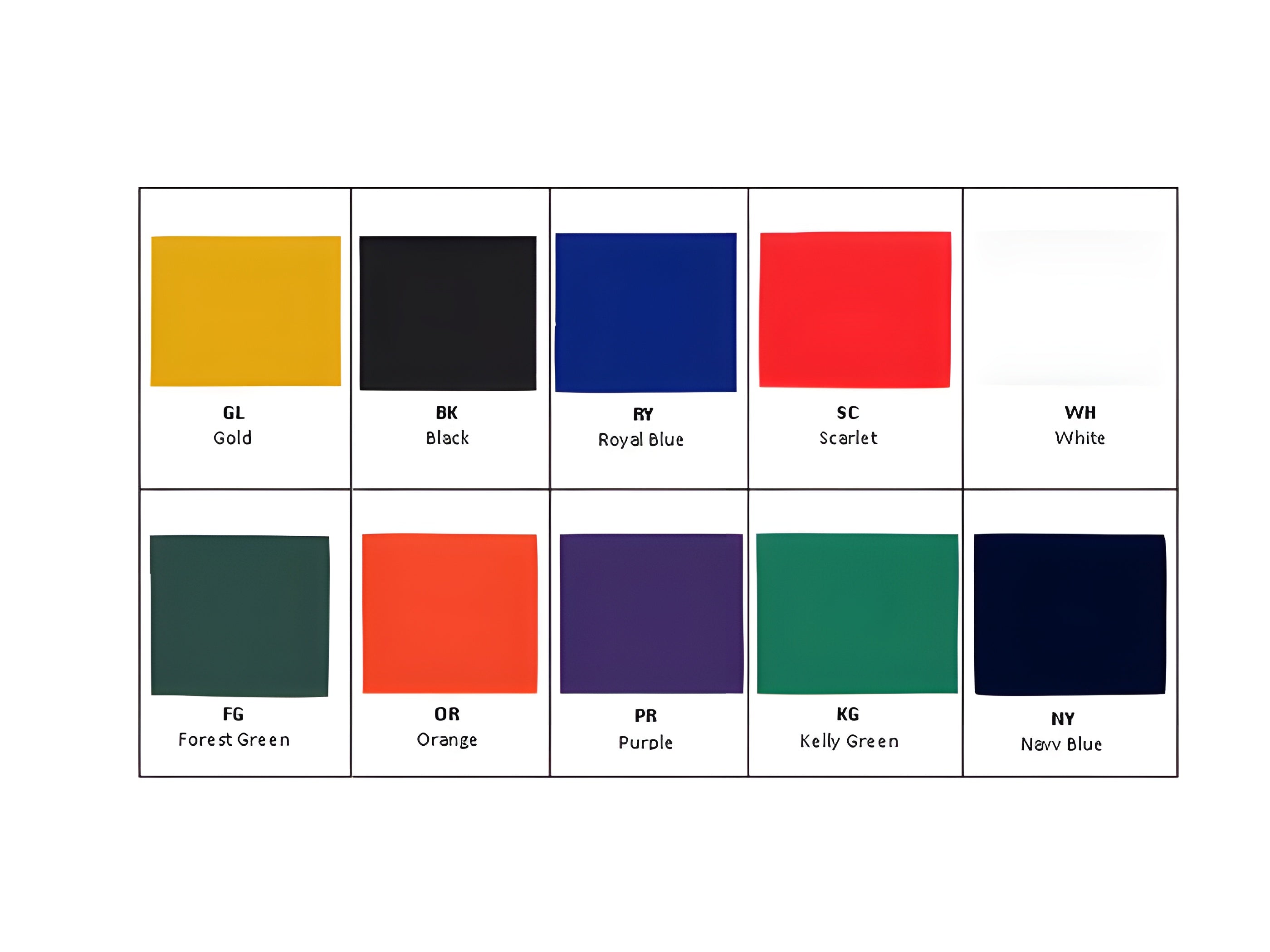 First Team can powder coat seat planks and foot planks up to 21' in length. Available colors include: Scarlet, Royal Blue, Navy Blue, Forest Green, Kelly Green, Gold, Orange, Purple, and White.