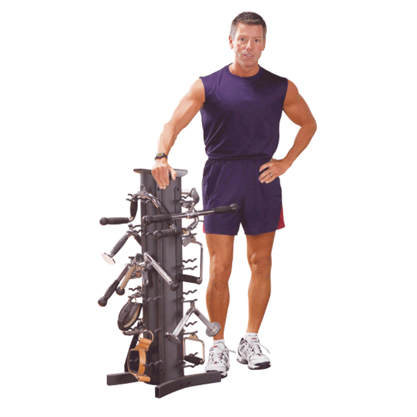 All-in-One Storage & Training Kit: Includes the Body-Solid VDRA30 vertical rack and a complete set of popular cable attachments—perfect for organizing and enhancing any strength training space.