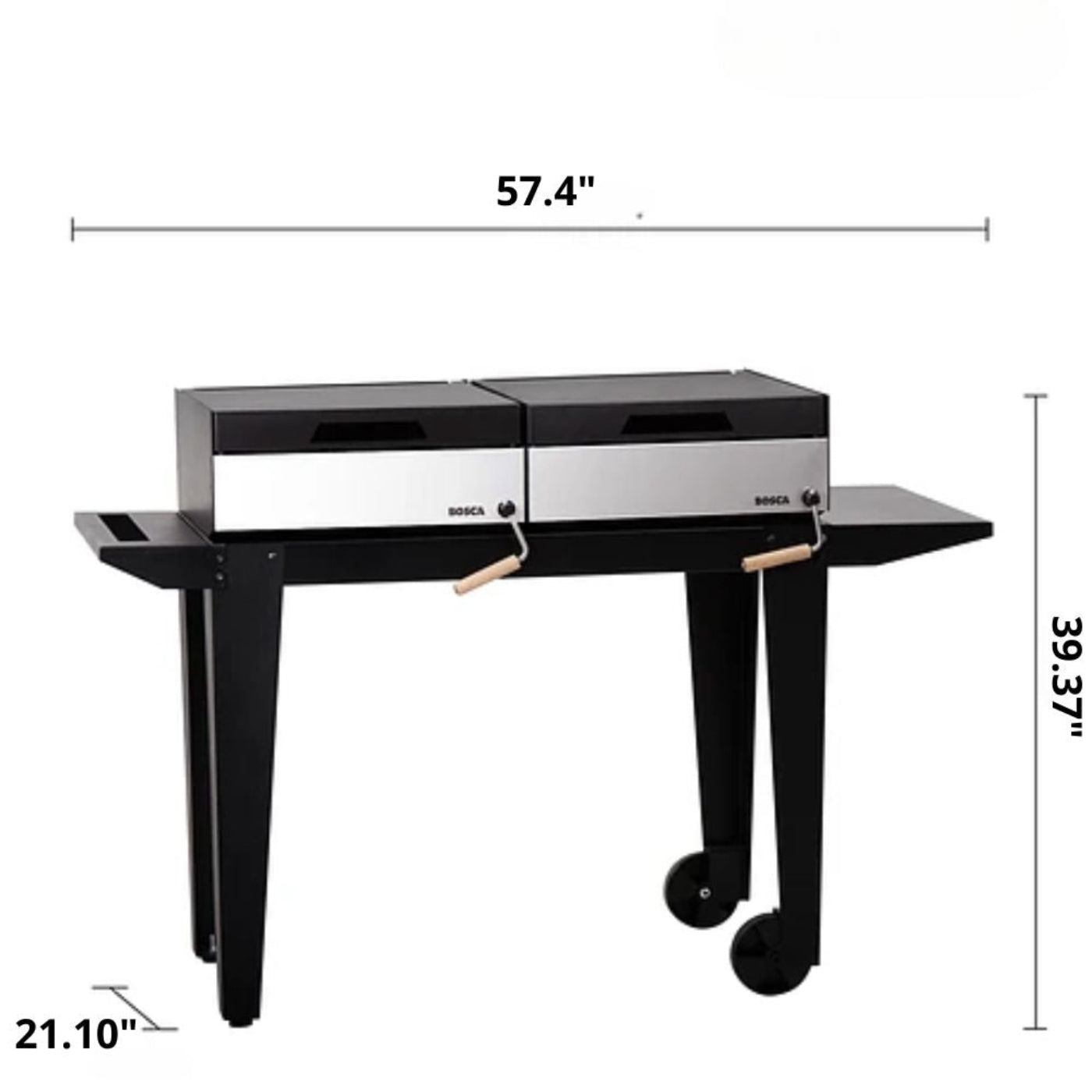 The bosca freestanding charcoal gill is combines elegant design with superior performance. The A+ stainless steel front gives the grill a sleek and modern look, while the refractory bricks base ensures that heat is evenly distributed for consistent cooking results. The stainless steel V-grid with juice channel creates perfect grill marks and captures juices for added flavor. The steel trolley with hinged trays provides convenient storage for utensils and accessories. The closing lid helps to enhance flavor infusion by trapping smoke and moisture inside the grill.