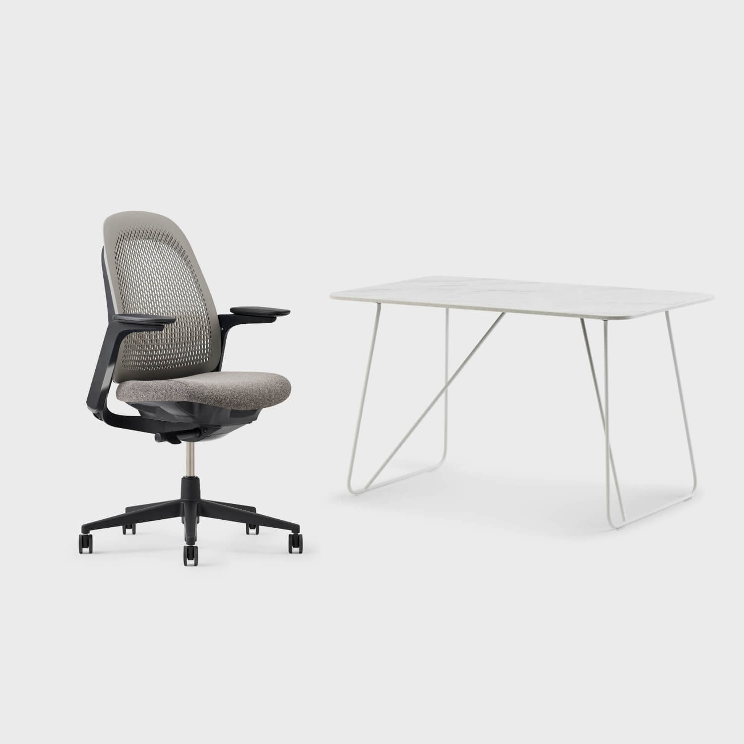 This ergonomic setup gives you all-day comfort with a modern look for any space. Breck is designed with an innovative back made from geometric stretch technology in three zones for full-back support. Market blends the best of style and functionality with an open design that leaves plenty of legroom.