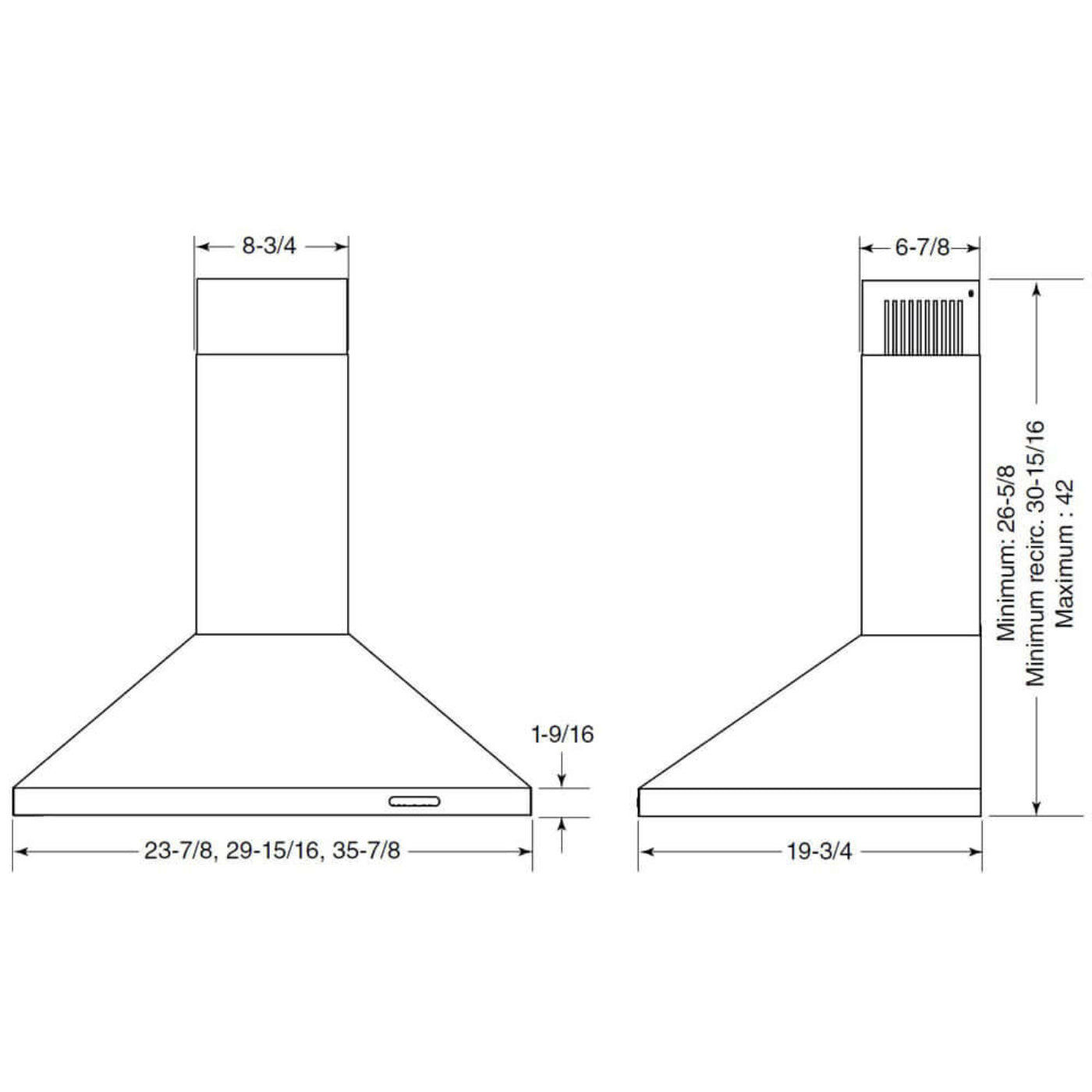 Q: What size is the Broan 36 in. Elite EW 48 Series Range Hood?