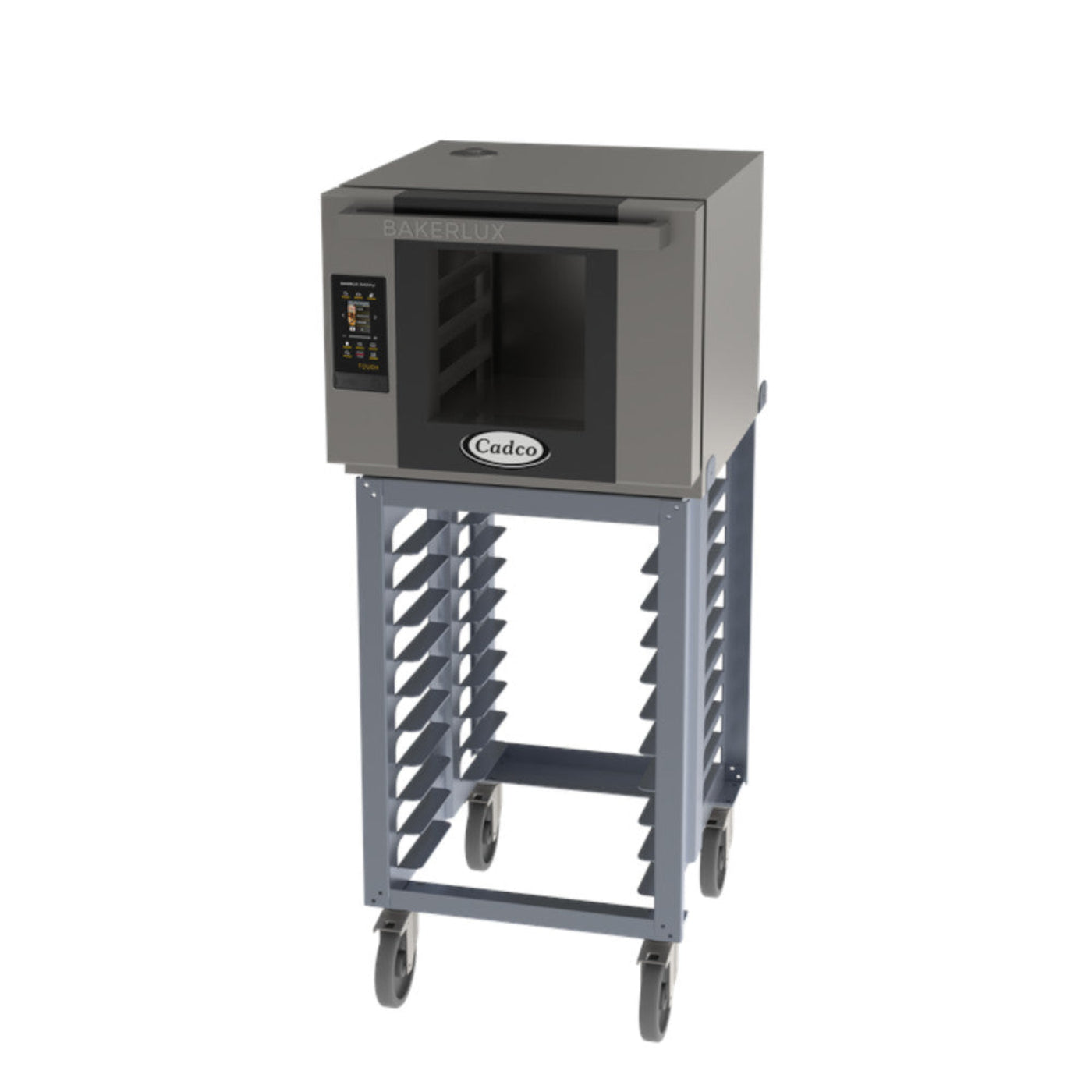 A: The Cadco BLS-4HTD-1 is a half-size convection oven featuring four shelves that accommodate standard half-size sheet pans. It includes a stand and a TOUCH digital programmable control panel for intuitive operation. The oven operates on 208-240 volts, consuming 3,800 watts (16 amps). The list price for this model is $5,920.00.