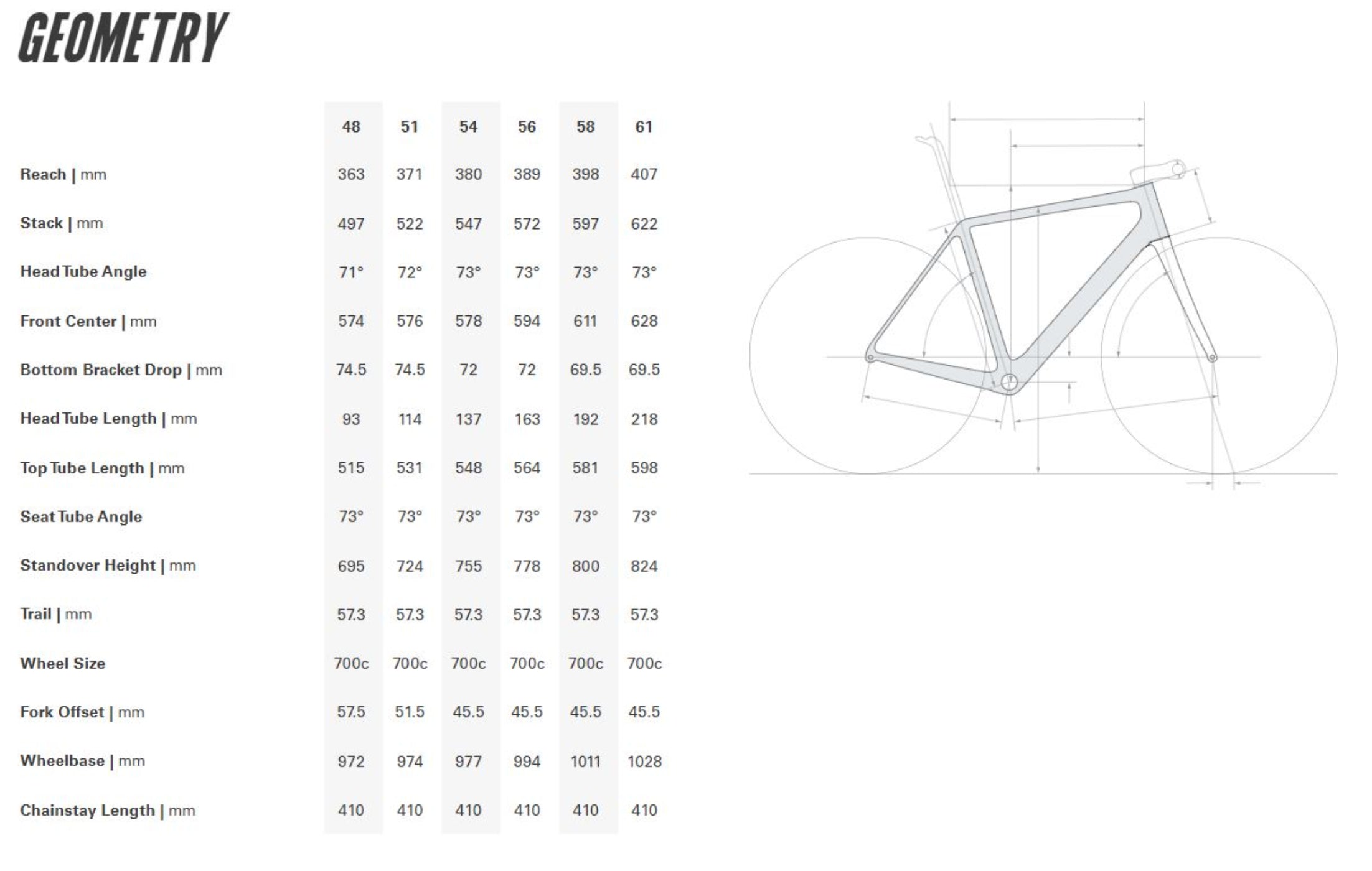 Available in sizes 48, 51, 54, 56, and 58 cm.